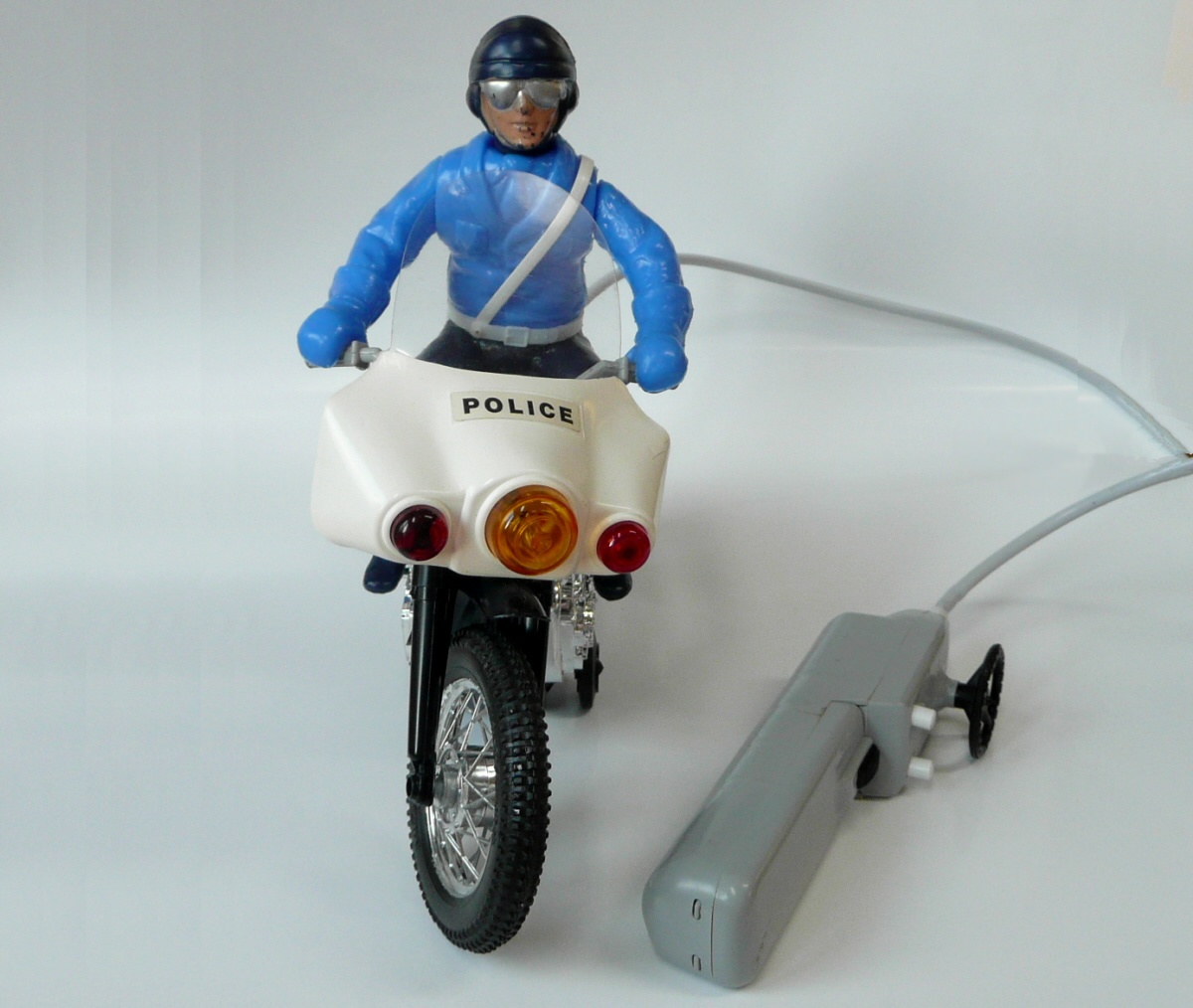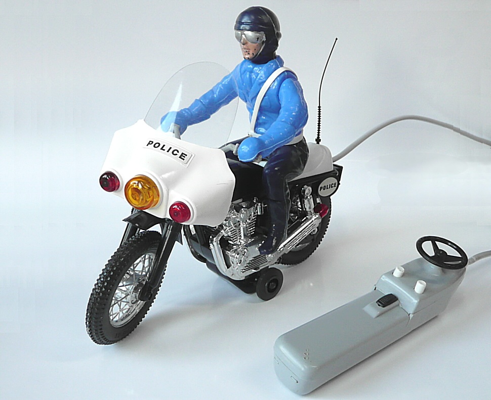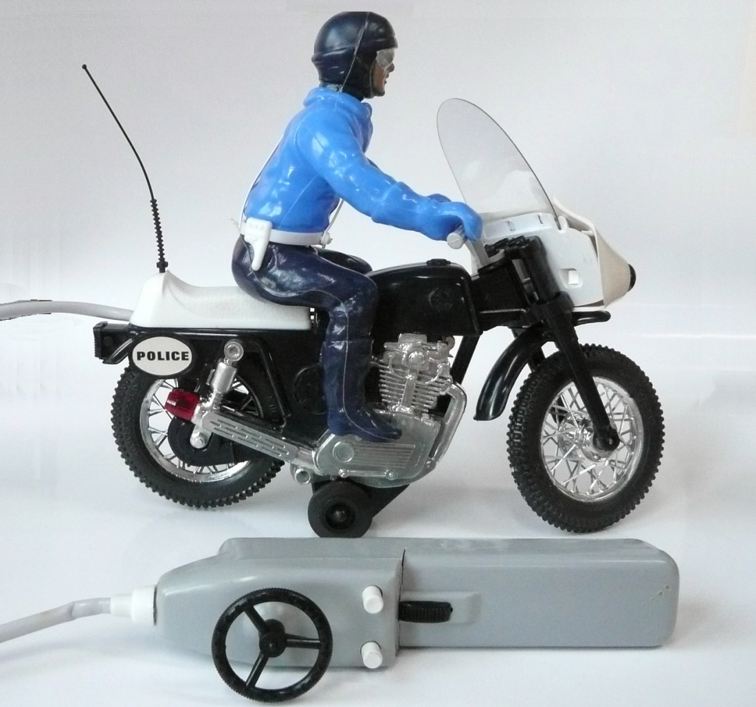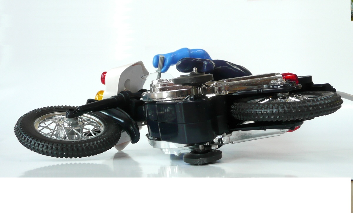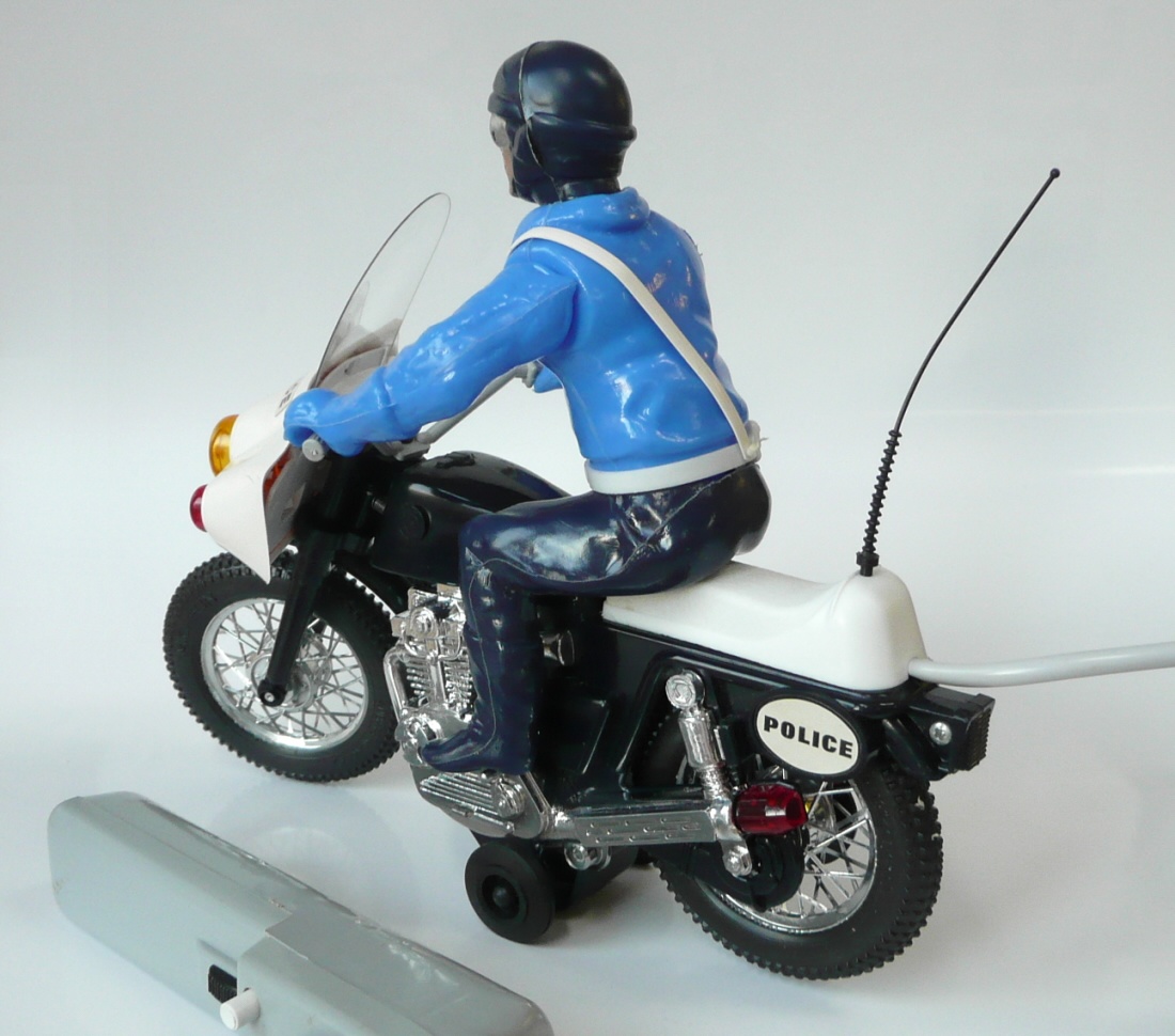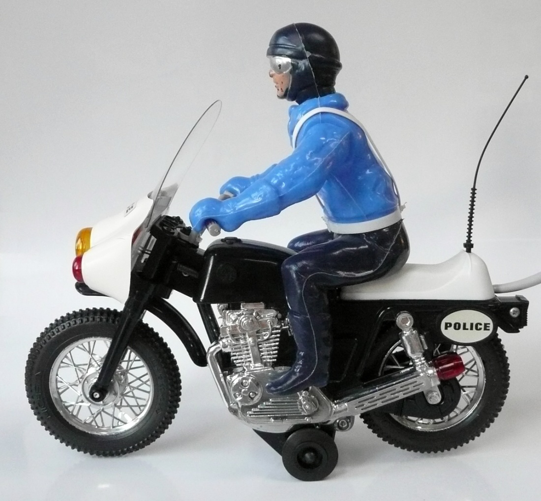 MOTO HONDA POLICIE 2. Výrobce BANDAI (US patent) JAPONSKO. Kov, jezdec plast, délka 30 cm. Dálkové ovládání...
