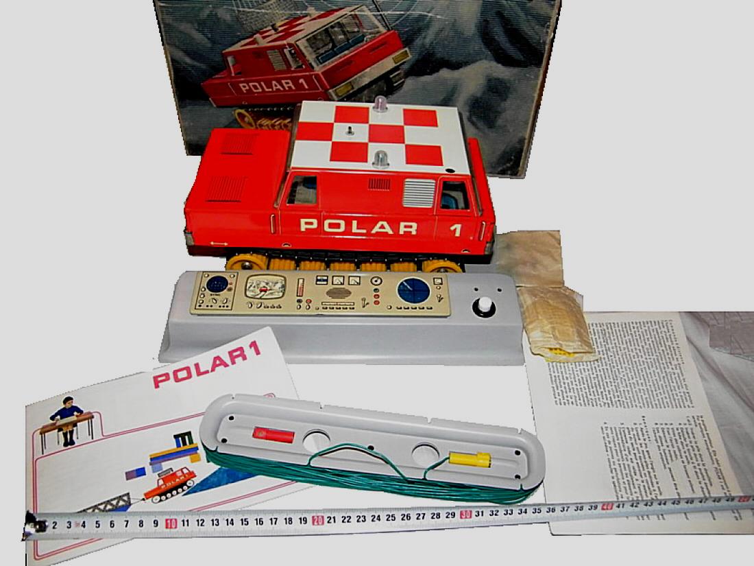 Červený nátěr míval výhradně Polar 1, který měl elektronické dálkové ovládání. Jednalo se o jednokanálové řízení uvnitř indukční smyčky, která se musela rozvinout kolem prostoru, v němž se měla hračka pohybovat. Jediným ovládacím prvkem bylo tlačítko, kterým se vyvolávala změna režimu, a ten pak byl funkční až do dalšího stisknutí tlačítka. Smysluplné ovládání všech směrů jízdy a stop bylo zajištěno pevnou sekvencí režimů, která se cyklicky opakovala pomocí relátka ovládaného dálkově tlačítkem: vzad, stop, vpřed, vpravo, vlevo, vpravo, vpřed, stop s přibližne 5 s pauzami. Indukční smyčka mohla obepnout prostor cca 4 m x 4 m. Za jednoduchost se platilo tím, že než jste mohli udělat něco, co jste chtěli, muselo proběhnout několik zbytečných režimů. Nicméně bylo to magnetické dálkové ovládání.