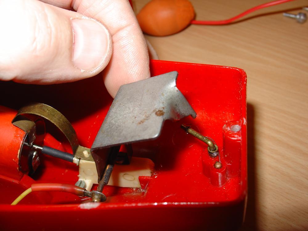 Zakřivení a tvar vačky kormidla – při stlačení dolů sepne kontakt motorku a zároveň vychýlí páčku kormidla podle míry stlačení.