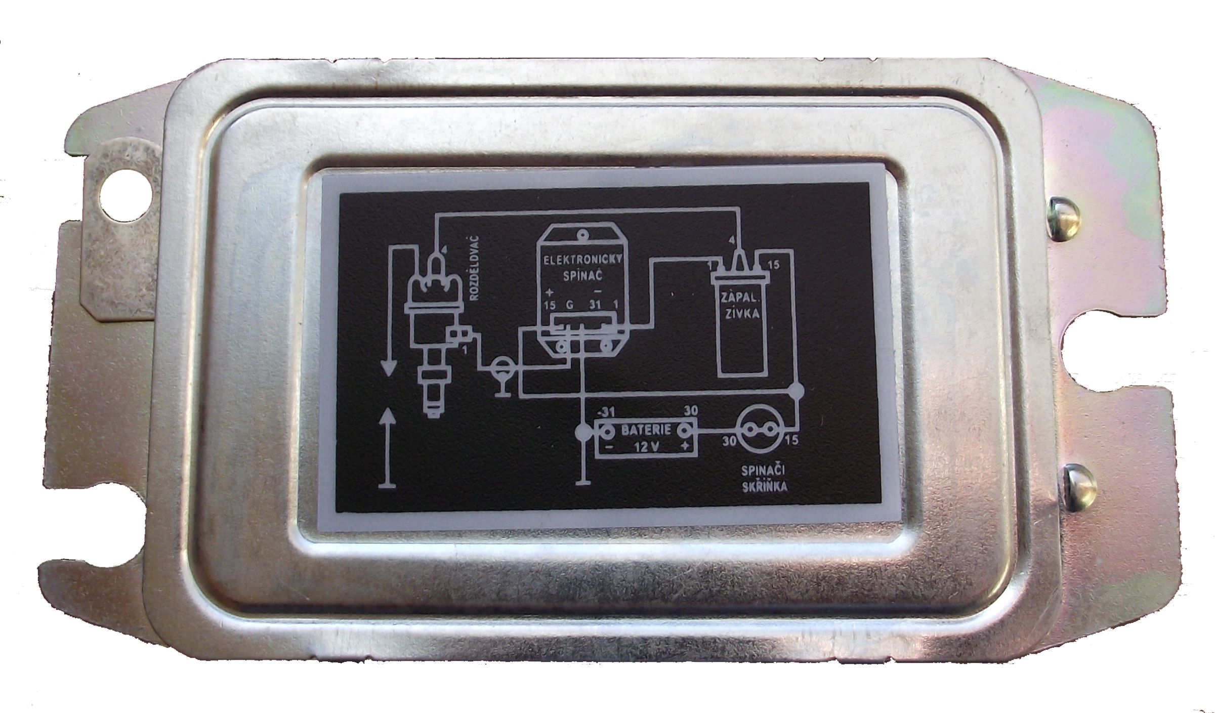 Obr. 13 - zadní strana tranzistorové jednotky se schématem zapalování