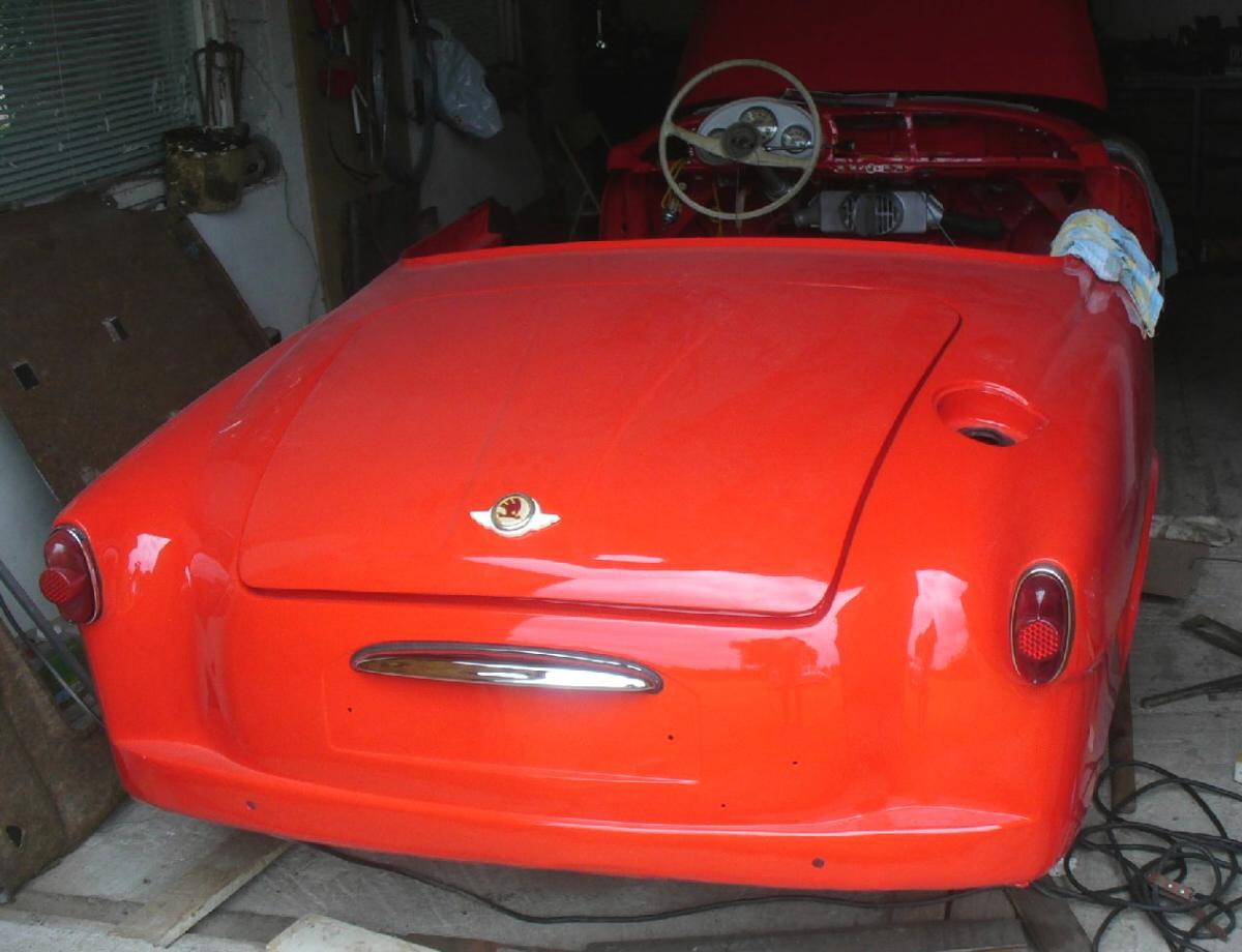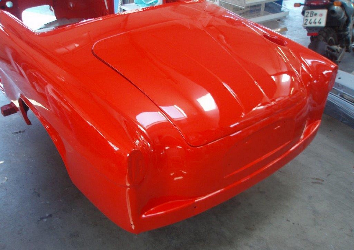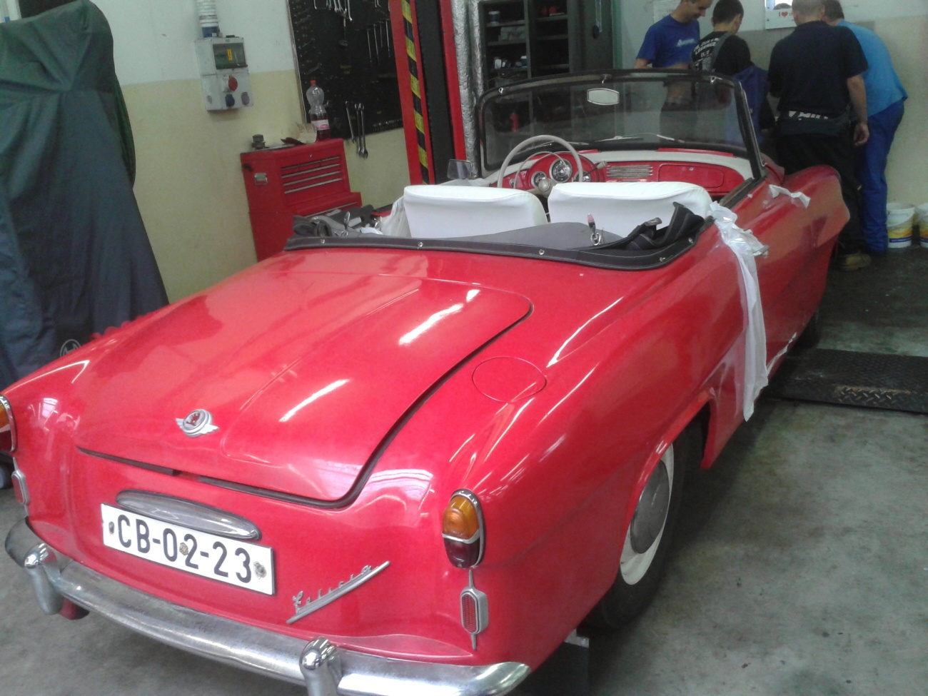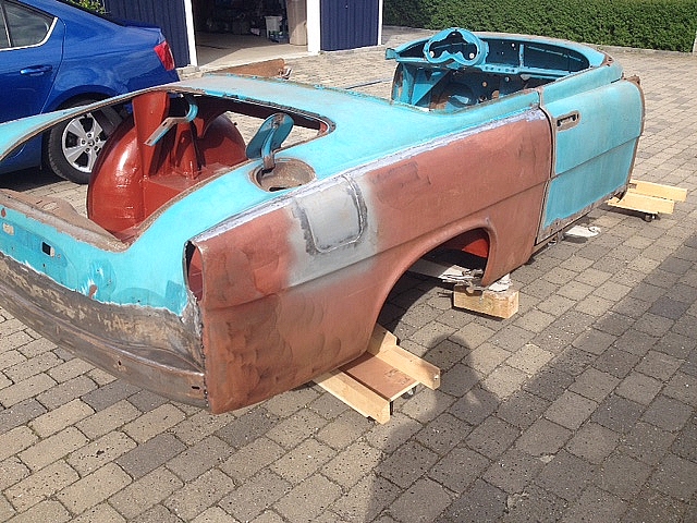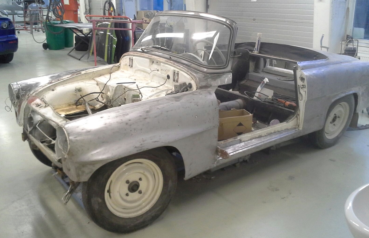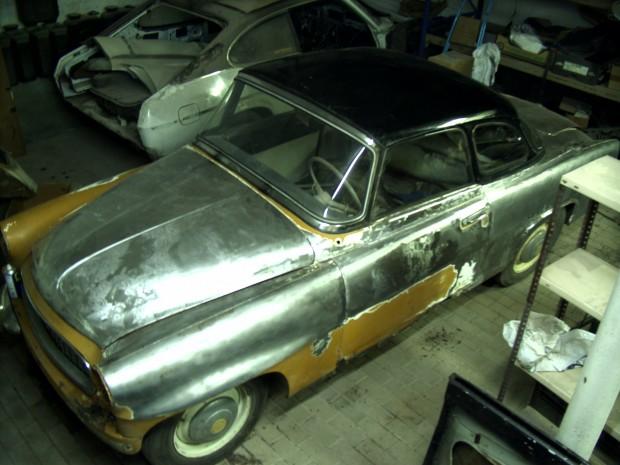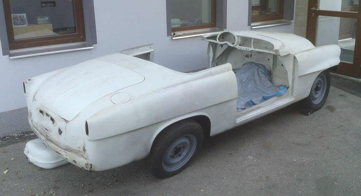 Roberto Suess, Rodgau, Německo — Škoda Felicia, 1960. 2014 – aktuální stav karoserie s nesprávnými lištami (Derzeitiger Restaurationsstand mit falschen Zierleisten).