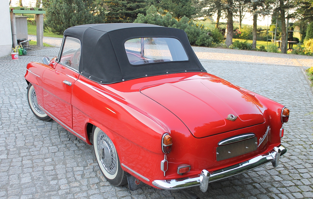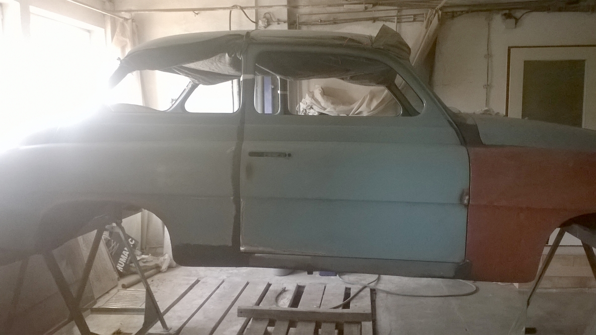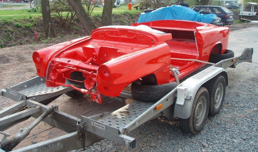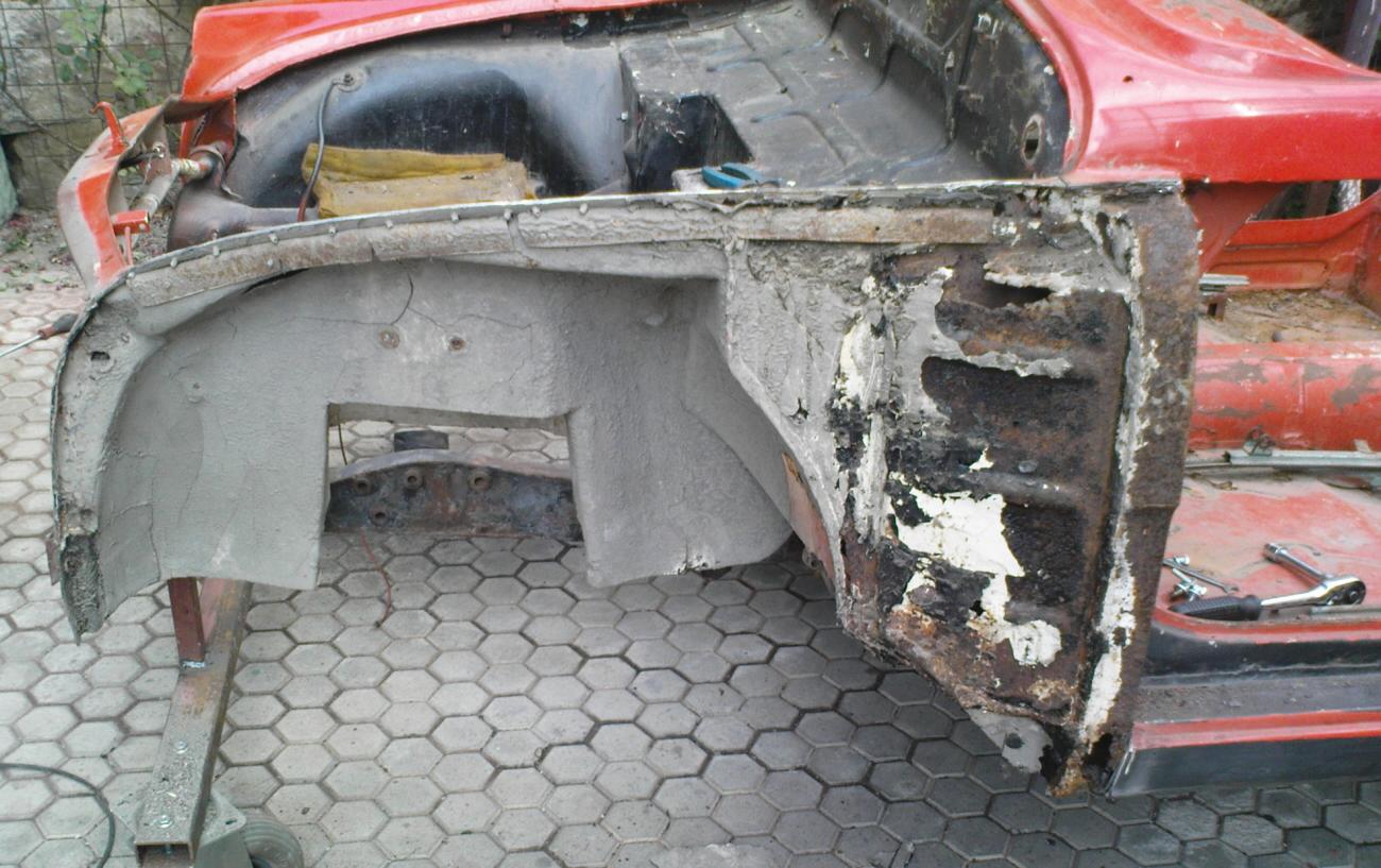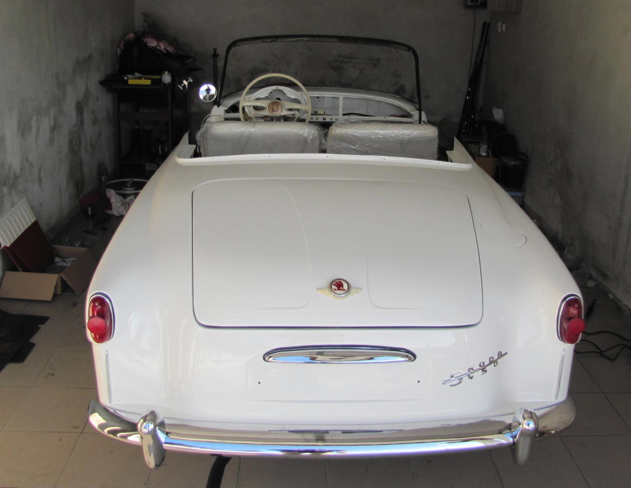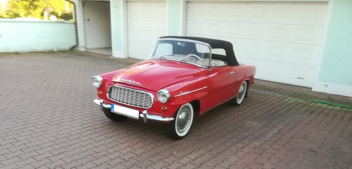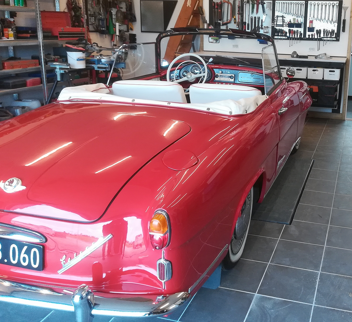 Roberto Suess, Rodgau, Německo — Škoda Felicia, 1960. 2014 – aktuální stav karoserie s nesprávnými lištami (Derzeitiger Restaurationsstand mit falschen Zierleisten).