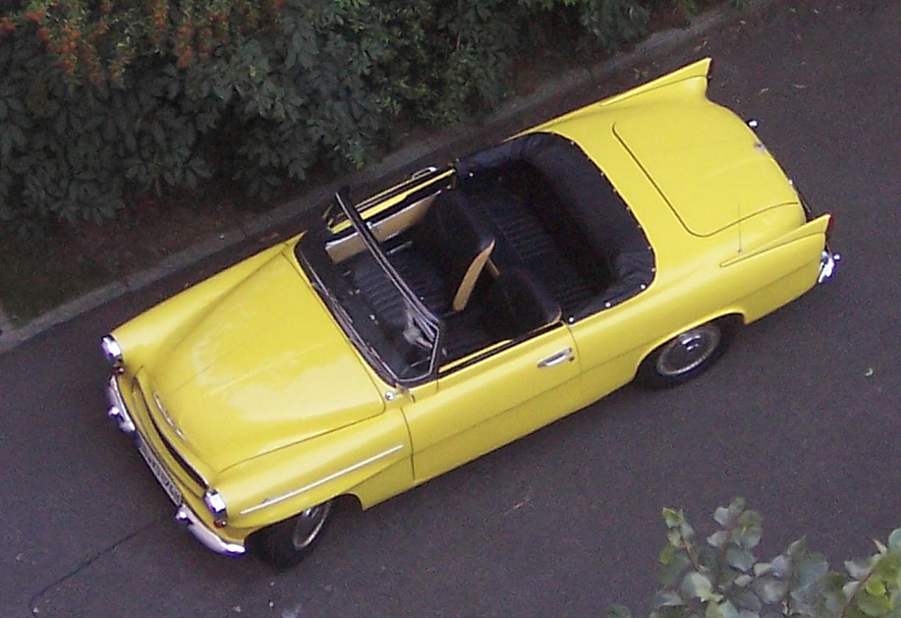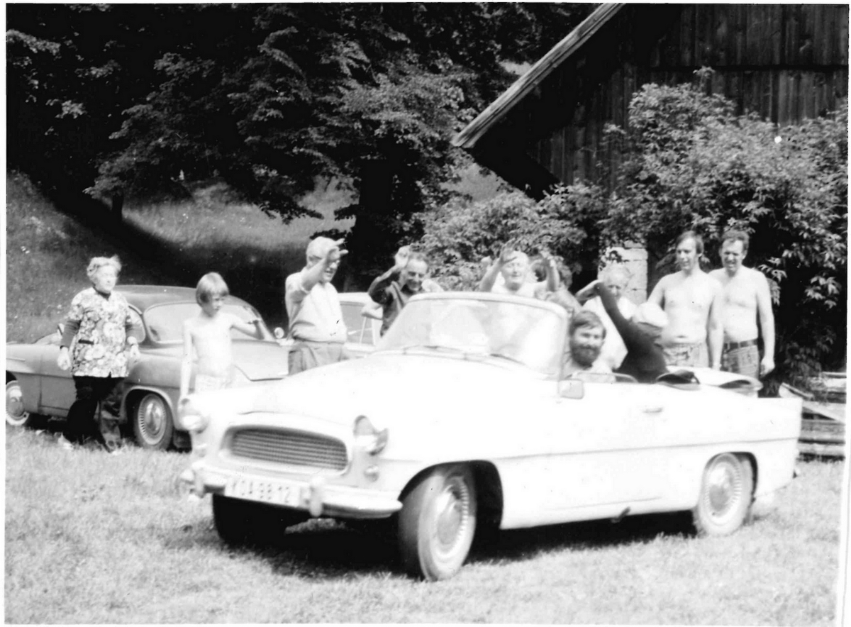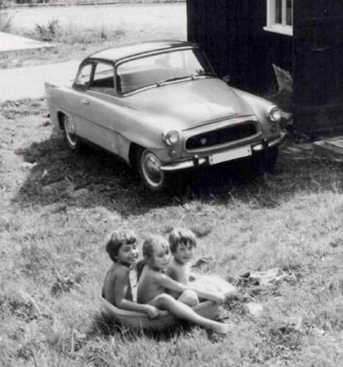 Jan Hudeček, Praha — Škoda Felicia, 1960. Zasílám pár fotek naší Feldy, rok 1960. Je plně pojízdná a pomalu se ji snažím dát do původního stavu. Díky vám za náhradní díly a informace. S přátelským pozdravem celému kolektivu, Honza Hudeček.