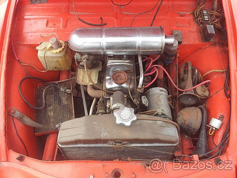 Pokračování — Posílám malý komentář k vozu. Obsah 1089 ccm, výrobní číslo 50128x. Karoserie je v novém laku od předchozího majitele, zbytek je původní, takže čeká větší či menší renovace (motorový prostor, podvozek, interiér…). O původnosti motoru nejsem přesvědčen (číslo nesedí s TP).