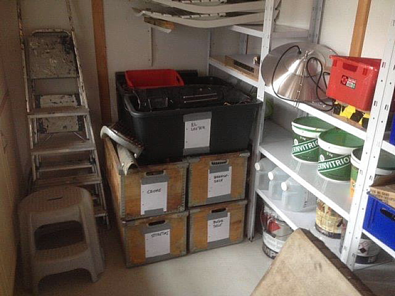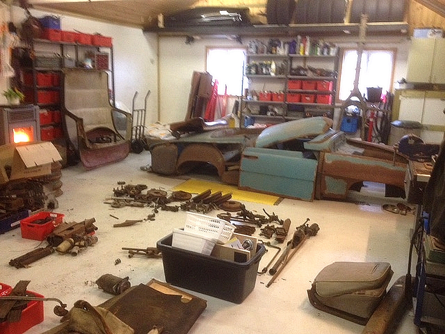 Pokračování — Současný stav. Krabice součástek a náhradních dílů, co nasbíral tatínek, jsem nefotila — zabírají půl garáže.