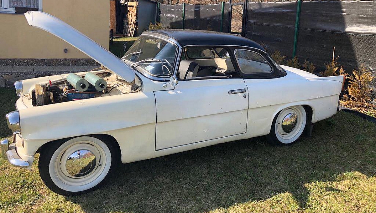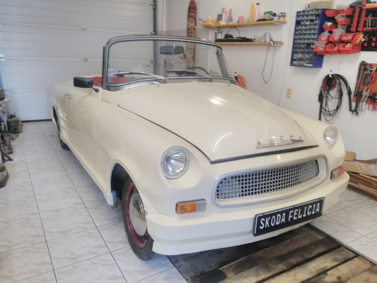 Jiří Zahrádka, Sobotka — Škoda Felicia, 1960. Vůz po prvním majiteli, v původním stavu (až na lak). Nyní se dolaďují detaily, automobil dlouho stál.
