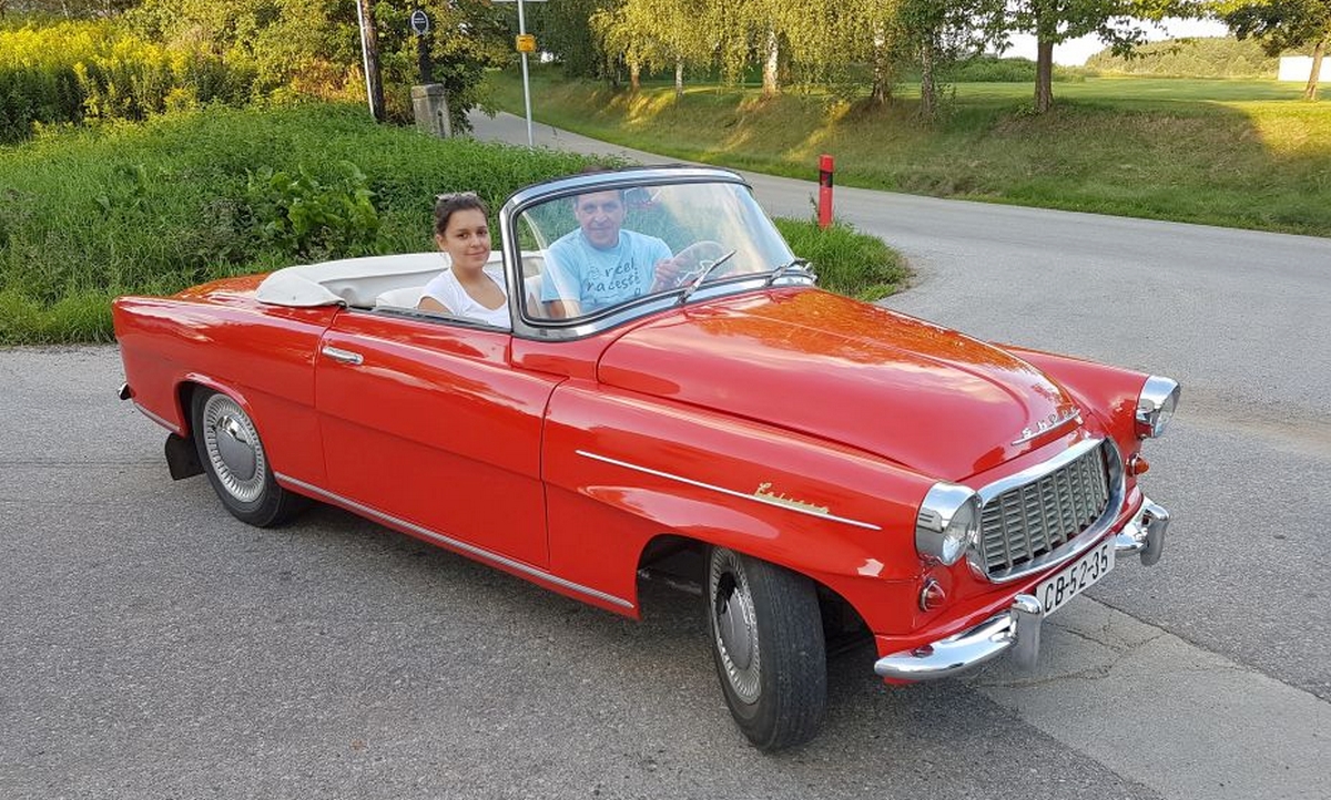 Filip Hlaváček, Chomutov — Škoda Felicia Super, 1964. Model s motorem o objemu 1221 cm³ se dvěma karburátory Jikov. Prvním majitelem byla moje babička, auto nikdy sama neřídila. Vůz sloužil celé rodině, jezdil i na dovolené do Bulharska a Maďarska a nikdy nás nenechal ve štychu. V roce 1996 ho prarodiče přepsali na maminku, která s ním také nejezdila. Auto stálo v garáži pod dekou, dokud jsem se o něj nezačal zajímat v roce 2017. Po několika stovkách hodin práce jsem zjistil, že většina dílů je v dobrém stavu. Interiér byl perfektní, motor točil bez potíží. Stačilo vyčistit a vyměnit „spotřební“ díly. Během půl roku bylo hotovo a Felicie mě i mou ženu odvezla na svatbu. Lak je původní, jen děda některá místa přetřel štětkou. Tachometr ukazuje 76 000 km. Patří mezi poslední vyrobené kusy (ještě nepotvrzeno). Chtěl bych požádat o certifikaci ve Škodovce. Největším zážitkem bylo znovupřihlášení auta do provozu — STK bez problémů, EKO zaplaceno, ale SPZ z depozitu zmizely, asi byly omylem skartovány. Přikládám pár fotek a děkuji za spolupráci. — Filip Hlaváček.