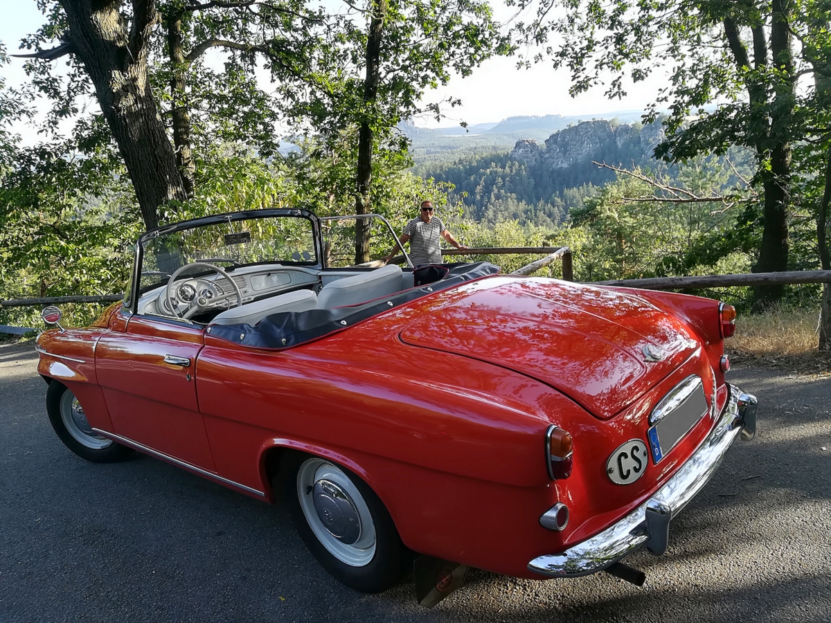 Rudolf Čapek, Plzeň — Škoda Felicia, 1961. 1. série s křidélky, kompletní renovace dokončena v roce 2008. Každý rok s vozem jezdím po soutěžích.