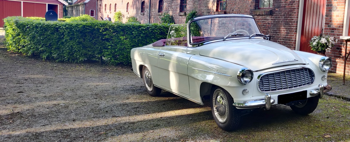 Robert Bonsma, Leeuwarden, Holandsko — Škoda Felicia, 1960. Posílám fotografii našeho kabrioletu Felicia z roku 1960. Po dvou letech obnovy je téměř připraven. Fotografie z června 2021, ze svatby mých bratrů.
