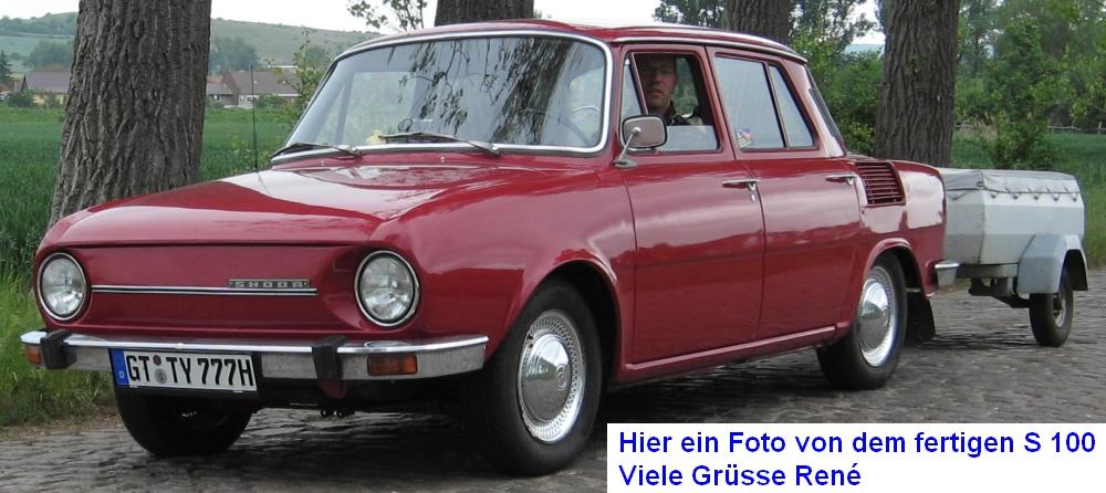 Karel Zavadil, Praha — Škoda 100L, 1974. Od 8/2009 jsem druhý majitel. Veškeré mechanické součásti jsem svépomocí zrenovoval i díky náhradním dílům z vaší firmy. Automobil je domácí mazel a jmenuje se „Ferda“. Za 7 let provozu (asi 17 000 km) s ním nebyl absolutně žádný problém.