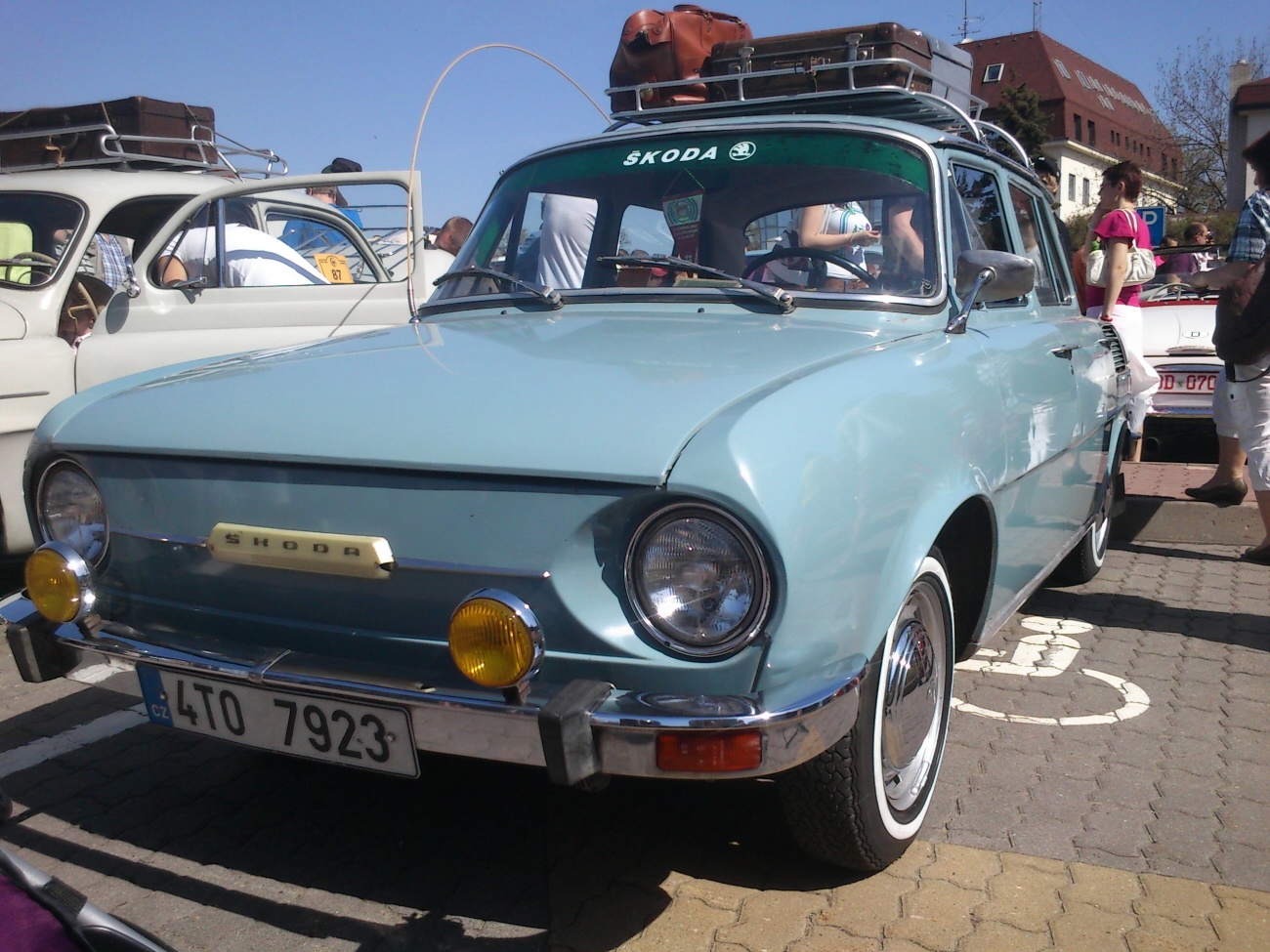 Miroslav Andrš — Škoda 100R. Zdravím a děkuji za pomoc při renovaci škodovky 110R. Posílám foto z výstavy v Opočně. – Miroslav Andrš.
