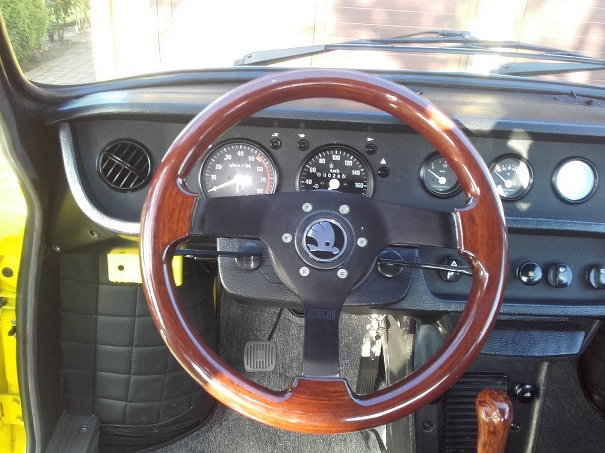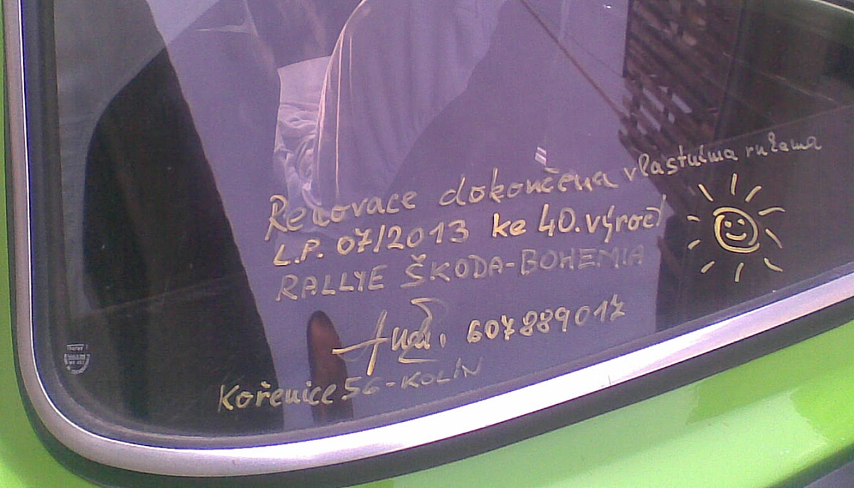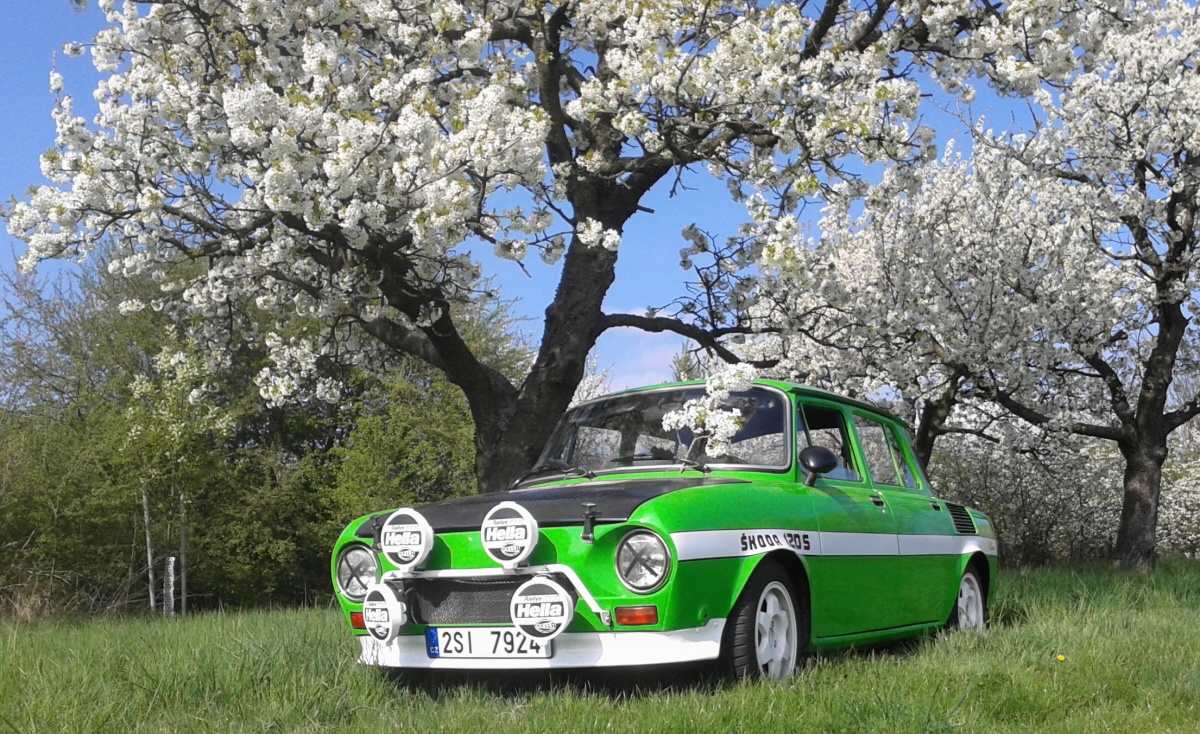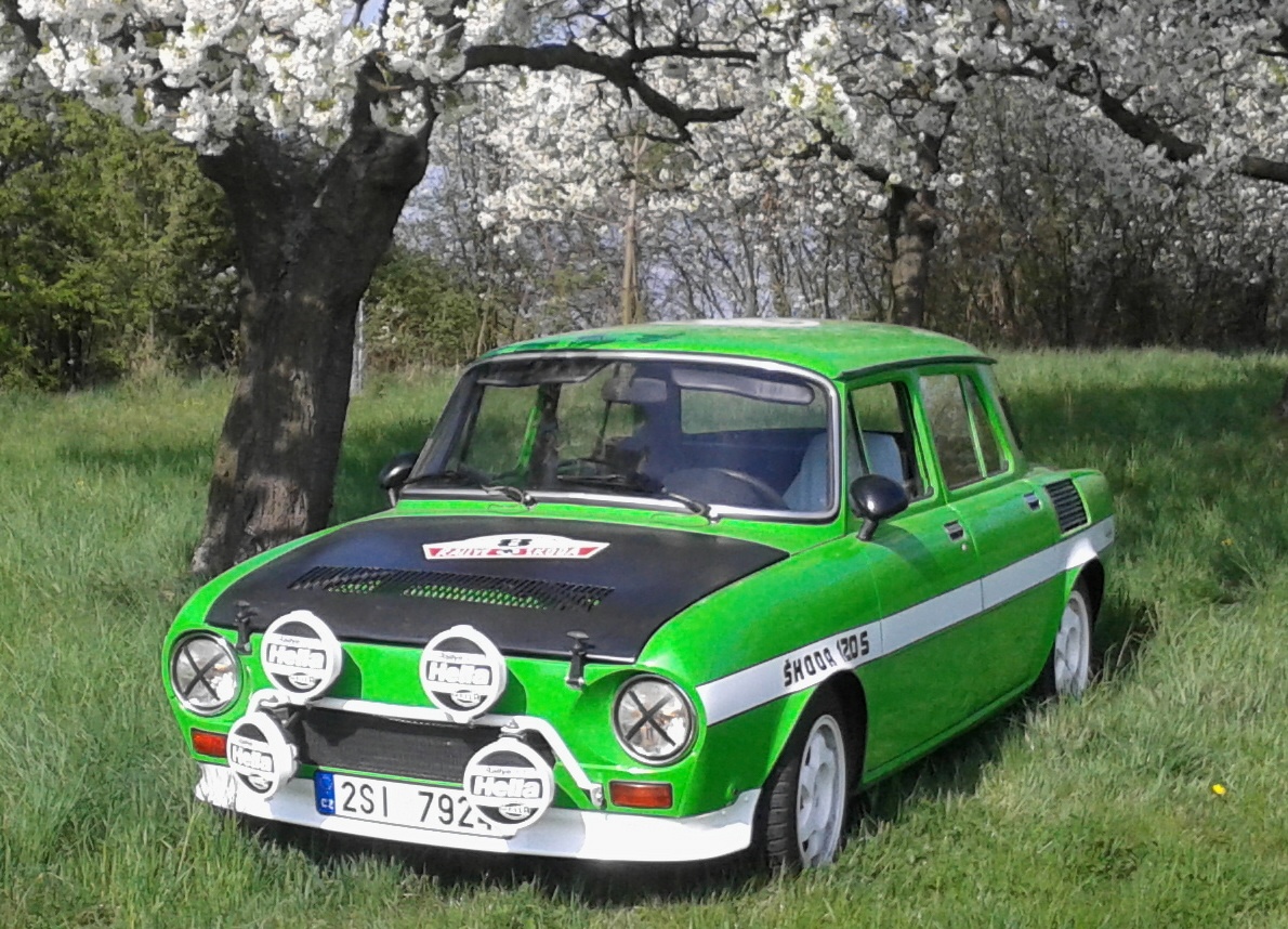 Milan Anděl, Kolín — Škoda 120S Rallye. Auto jsem zrenovoval vlastníma rukama, až na čalounění a strop. Tzv. stovečku jsem udělal jako vzpomínku na své první auto a 40. výročí Rallye Škoda (Bohemia). Auto jezdí jako drak a těším se na veteránský sraz v okolí.
