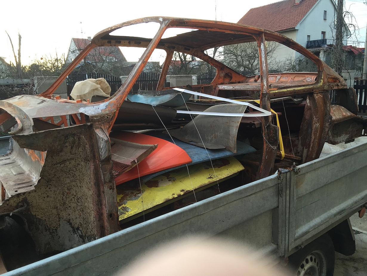 Petr Jírovec — Škoda 110R. Posílám foto veterána před kompletním odstrojením. Zatím to není moc na chlubení. :-)