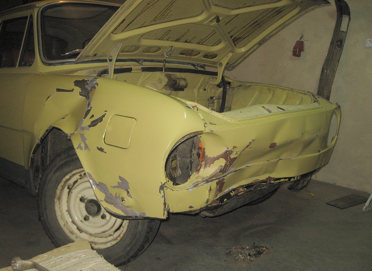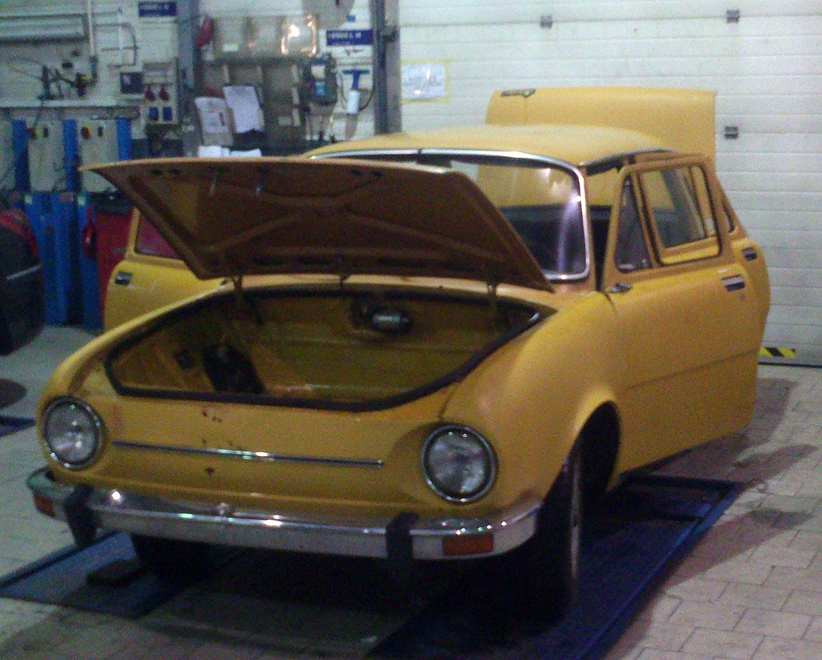 Tomáš Vaněček, Praha — Škoda 100L, 1976. Auto momentálně prochází rekonstrukcí, ale už brzy bude znovu kompletně pojízdné. Posílám pár fotek před rekonstrukcí z letošního léta.