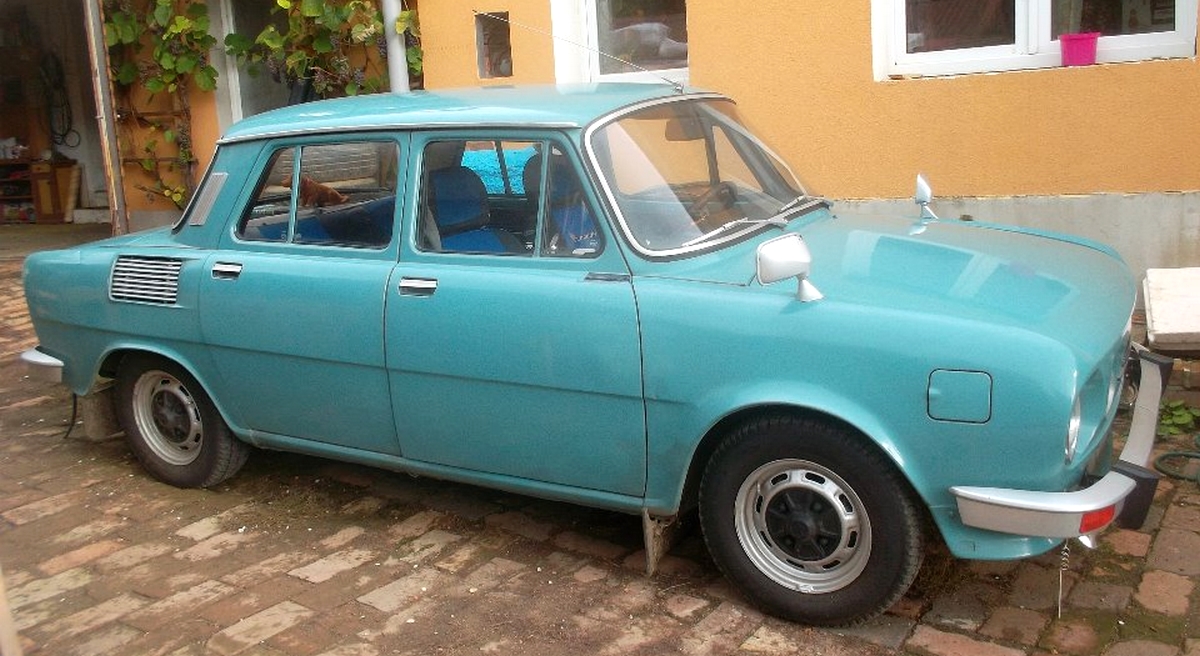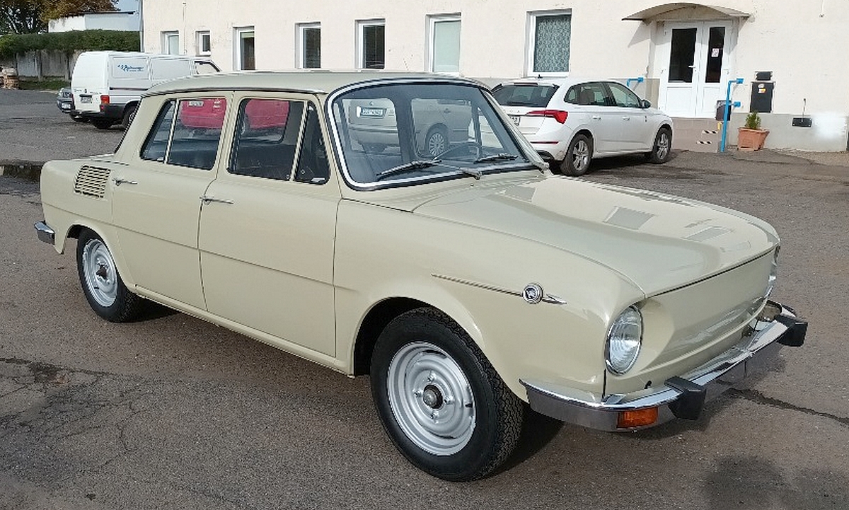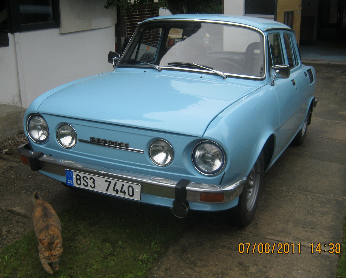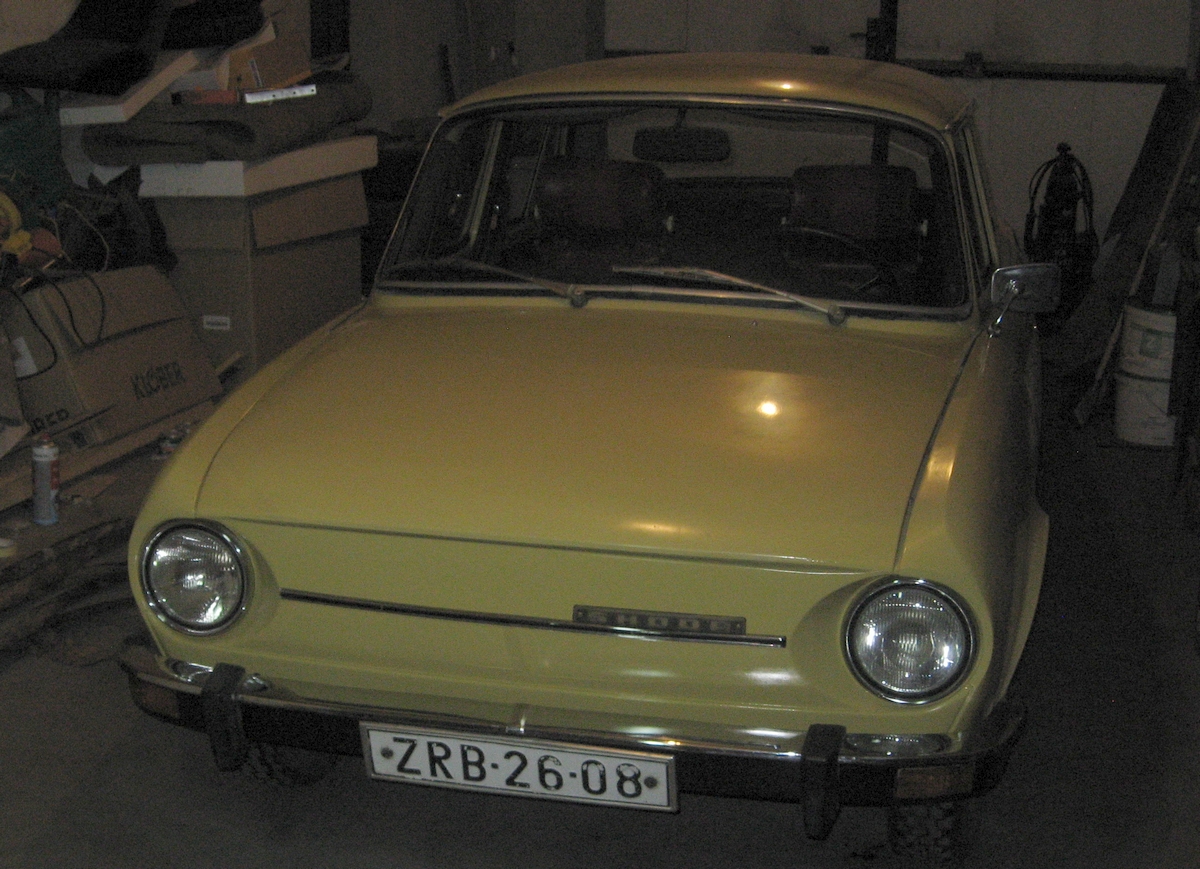 Roman Sandner, Cheb — Škoda 100L typ 722, r.v. 1972, 988 cm³, 35,3 kW. Po prvním majiteli, vše původní, jen kdysi měněné přední blatníky.