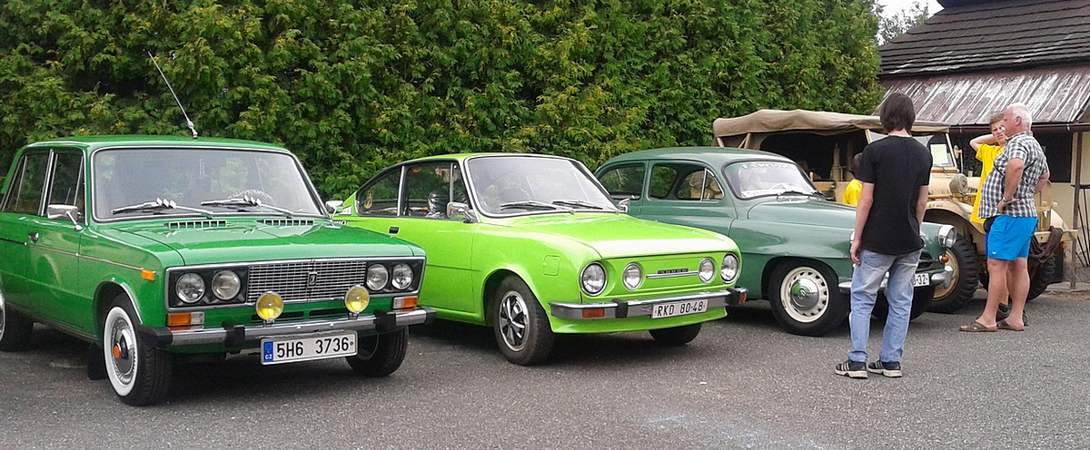 Michal Mušek, Plzeň — Škoda 100L. Auto po prvním majiteli, respektive jeho ženě. Dlouho stálo v garáži, vše původní včetně laku, najeto pouze 24 000 km. Dochovány všechny faktury o nákupu i opravách. Původní značky v depozitu, dokud auto „nerozhýbu“. Mám z ní velkou radost.