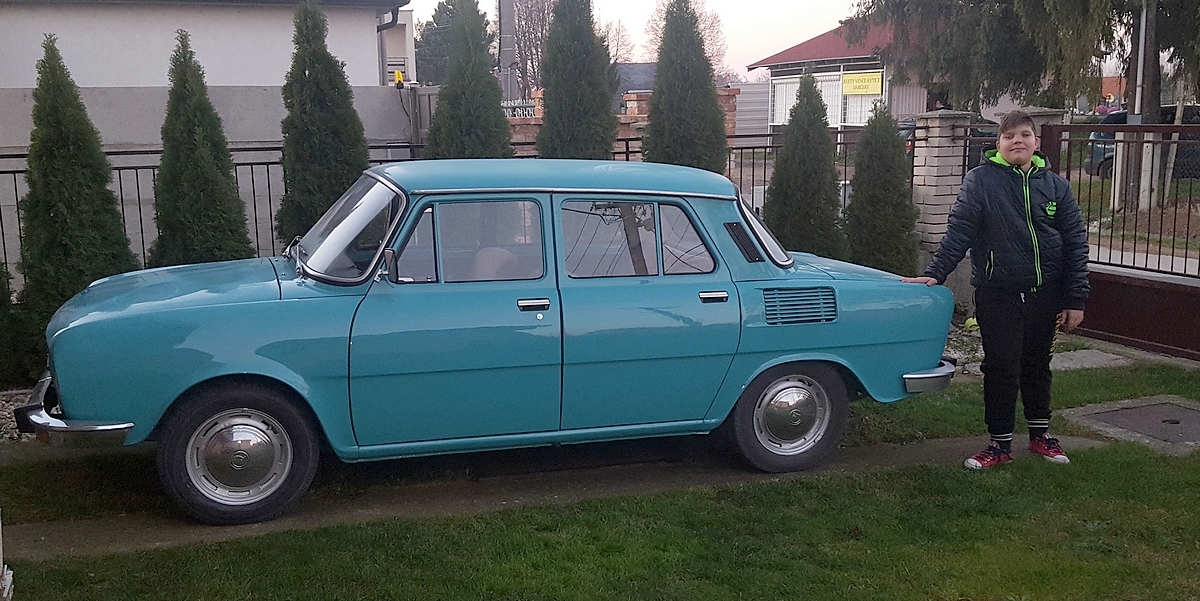 Robo Vessa, Slovensko — Škoda 100L, 1970. Ahoj, ďakujem za tovar, všetko prišlo v poriadku. Auto som kúpil od prvého majiteľa z Jablonce nad Nisou, 48 000 km, pôvodný stav, bez hrdze. Pôvodné rádio stále funkčné. S deťmi sa vozíme len párkrát cez leto – splnený sen!
