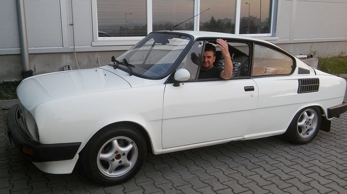 Škoda 110R, 1980 — Kúpil som ju v roku 2010, bola búraná, narýchlo sme ju spojazdnili kvôli STK, EK a prepisu. Momentálne v depozite, nie je čas robiť, bude to originál až na podvozok a agregát. Interiér a karoséria origo, motor bude Fabia 1.5 MPI prebrúsená s hlavou a čipom, no ešte sa uvidí, možno pôjde naspäť na originál. Je to o peniazoch. Tá stovka, prvotyp, sa pokúša vyvárať a pasuje, je to po dedovi, pôjde do originálu a na veteránske značky pre synčeka – teraz má 3 roky, takže ešte máme dosť času, kým narastie.