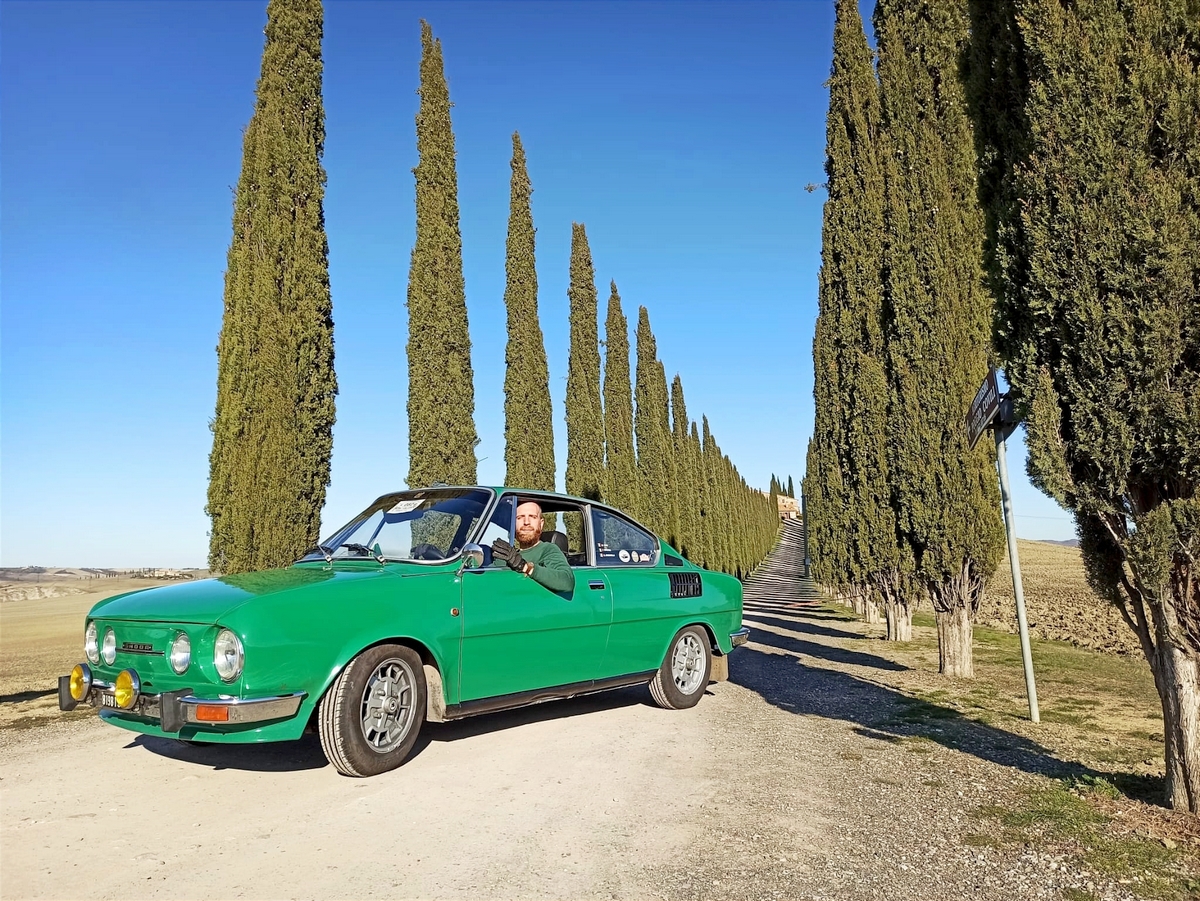 Marco Cirilli, Řím, Itálie — Škoda 110R. Dlouhý příběh lásky k vozu Škoda. Auto zachráněné z Florencie po 12 letech, zrenovované s přáteli. Už 12 let věrně slouží. Úspěšný milostný příběh. ;-)
