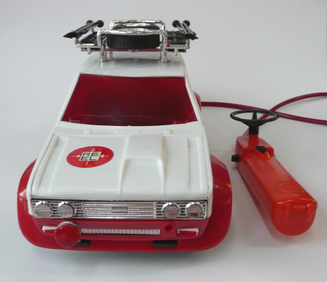 AUTO - KOSMOS. Výrobce PERION ?, MAĎARSKO.Plech, délka 34 cm. Lahůdkou je vznášející se kulička nad vozem na proudu...