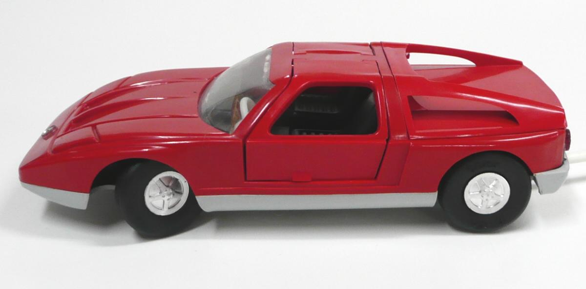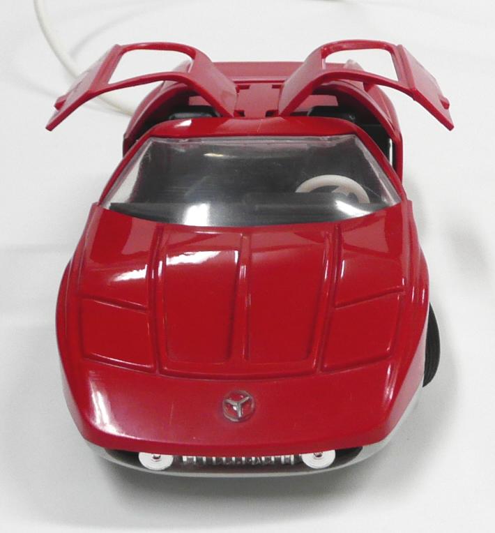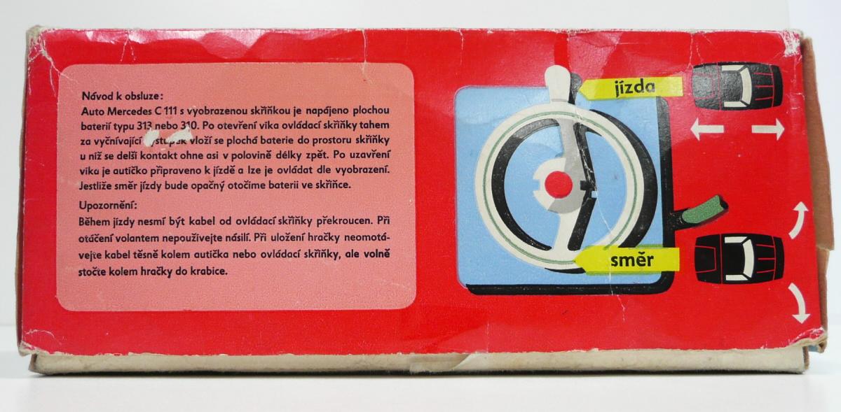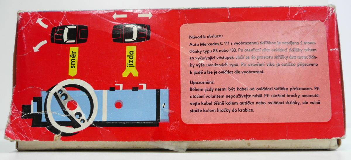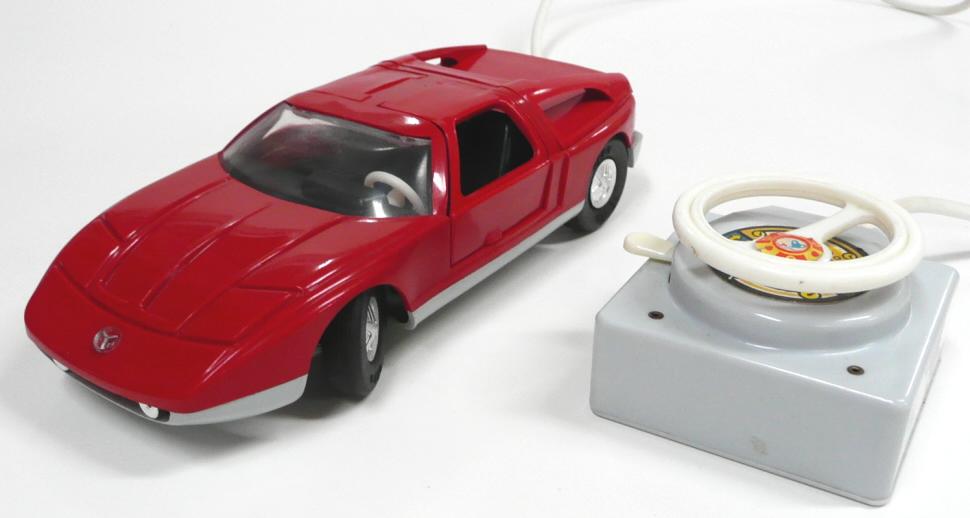 Dálkové ovládání bowdenem. Jedna z hračkářských variant velmi známého experimentálního vozu s Wankelovým rotačním motorem firmy Mercedes Benz z roku 1970.