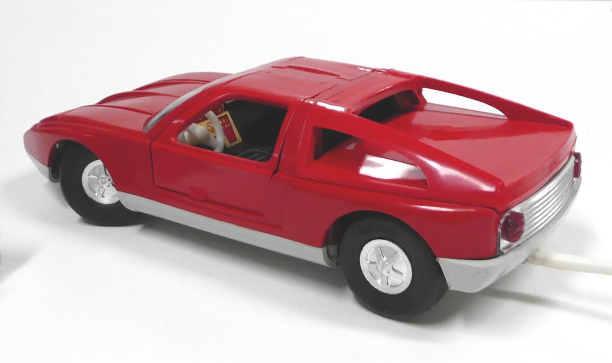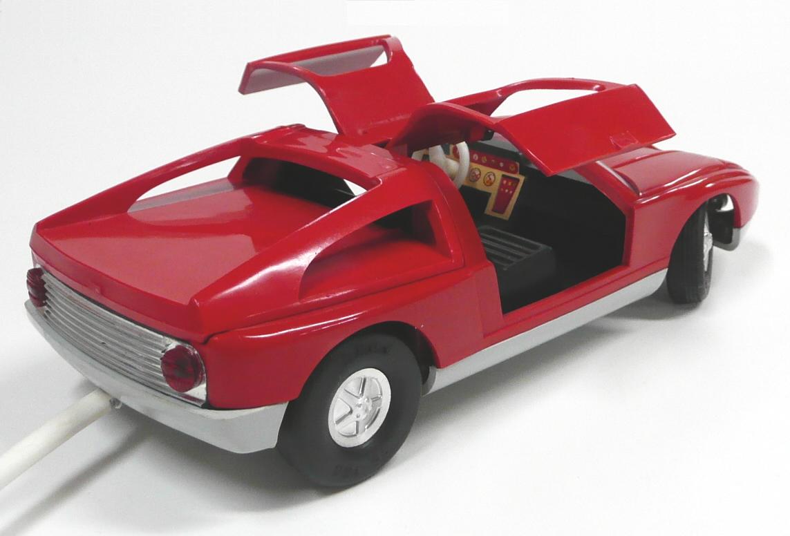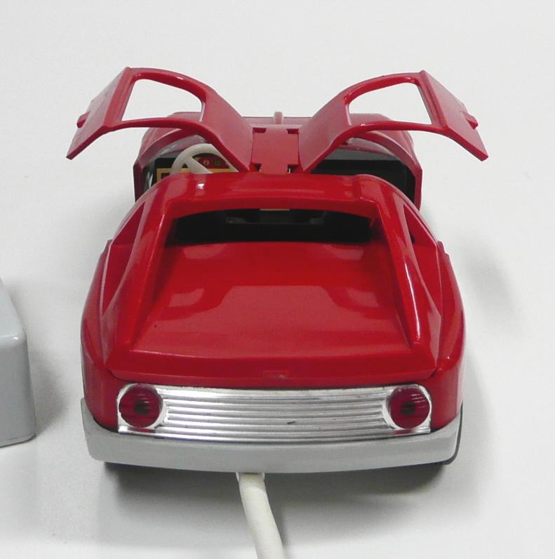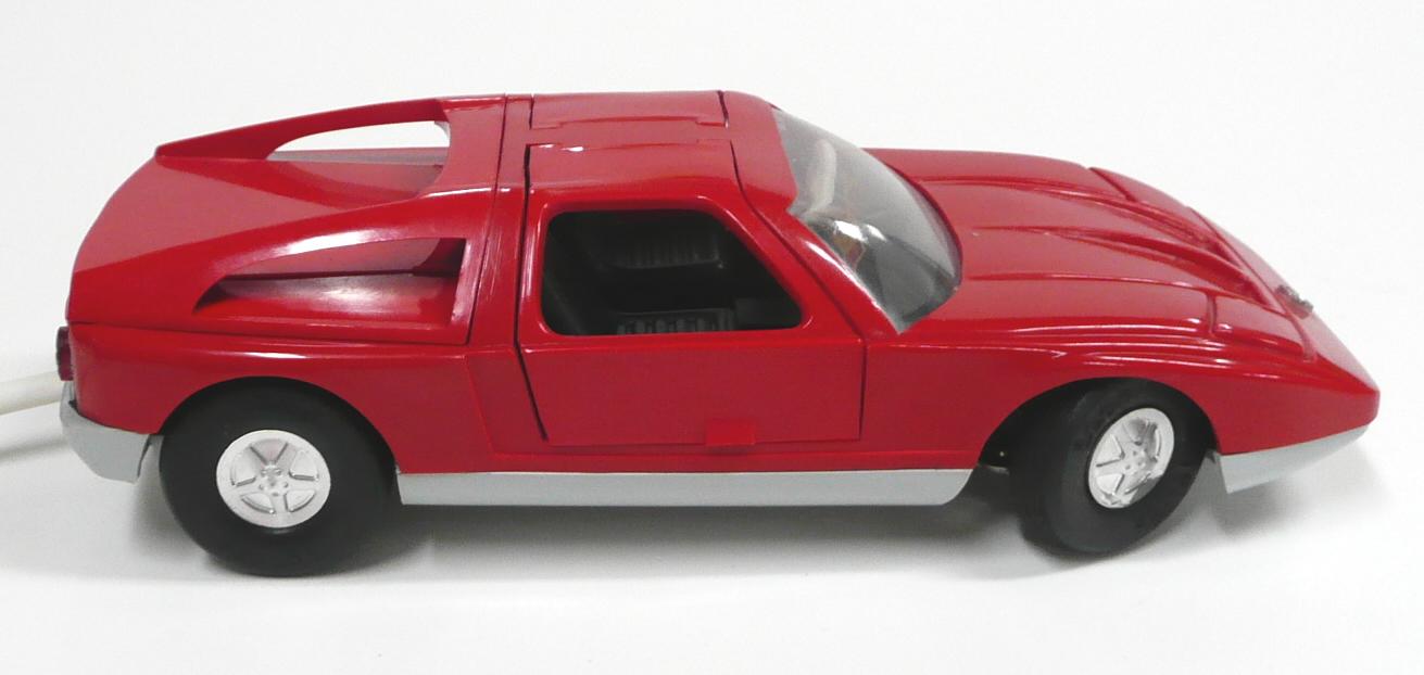 Dálkové ovládání bowdenem. Jedna z hračkářských variant velmi známého experimentálního vozu s Wankelovým rotačním motorem firmy Mercedes Benz z roku 1970.