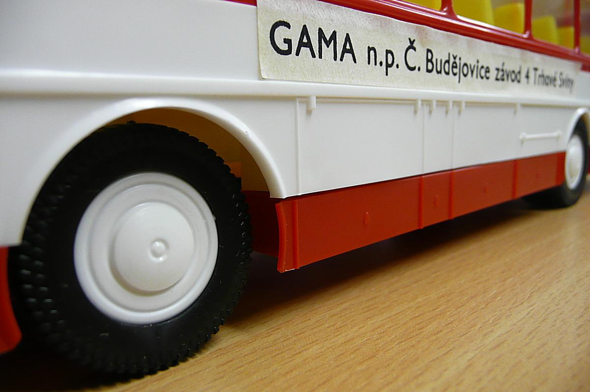 Dvě základní provedení - s bowdenem /bez bowdenu. V několika barevných kombinacích. A skoro až přepych 3 různé poklice disků kol. A poslední řada sedaček měla buď mezery nebo celovysoká. Na samolepkách karoserie a písma odlitého na podvozcích je vidět vývoj od značky ITES až po značku GAMA. Pro zajímavost ŠD znamená Dálková verze (ŠM Město, ŠL Linka). Zajímavým postřehem je, že díky značné tvarové podobnosti přední a zadní části autobusu i světel zřejmě při výrobě hračky byly zcela nelogicky zaměňovány barvy světel. Ačkoliv skutečná předloha měla vždy čtyři kruhové čiré světlomety vpředu a červená kruhová koncová světla vzadu na vnější straně, zatimco kruhová couvací čirá světla vzadu uvnitř, u hraček je to sázka do loterie. Jak je vidět u několika exemplářů, pracovníci si s barvou tvarově shodných světel příliš vrásek nedělali, takže je celá řada exemplářů, které mají například všechny přední světlomety oranžové. Jsou i exempláře, které vpředu mají stejnou kombinaci barev světel jako vzadu a jsou dokonce i exempláře, které mají všechna světla oranžová. Evidentně se jedná o zmetky, ale při výrobě to nikoho asi nepálilo. Jedná se tedy o výrobní vlastnost, nikoliv o zásah horlivého sběratele metodou "oprava stylem co dům dal".