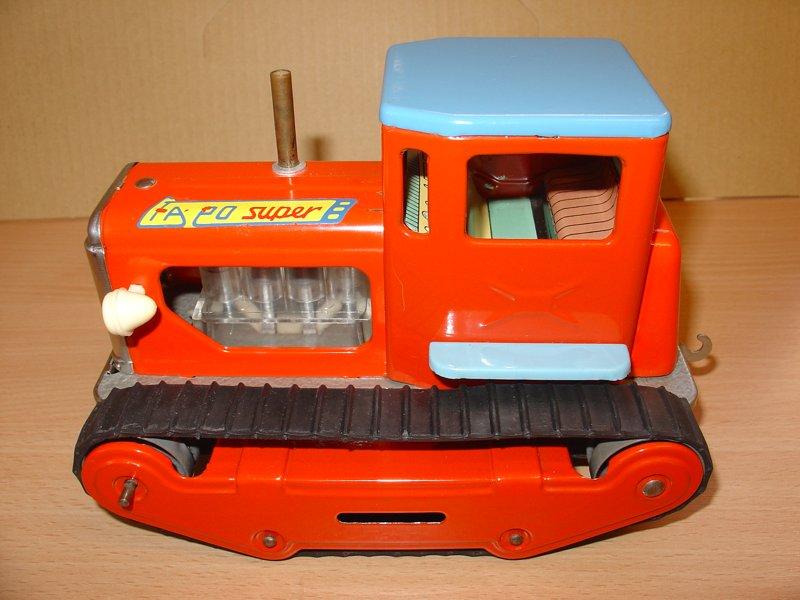 Zajímavá hračka vyráběná v 70. letech v podniku Tatrasmalt Pohorelá (odtud zřejmě název TAPO). Jedná se o jedinou československou elektricky poháněnou pásovou hračku, která byla dálkově ovládaná bowdenovými lanky a uměla i zatáčet.Originální řešení spočívalo jednak v tom, že veškerá elektrická instalace byla umístěna v hračce, protože přepínač jízdy vpřed či vzad byl poháněn jedním ze dvou bowdenů (většina hraček tohoto výrobce se stejným ovladačem měla elektrický přepínač ve skříňce - viz např. Tatra 137), jednak v tom, že druhým bowdenem se ovládala převodová skříň s posuvnou předlohou, takže jediný motorek mohl zajišťovat směr jizdy vpravo-přímo-vlevo přesouváním předlohy tak, aby byly poháněny obě poloosy nebo jen jedna z nich. Na rozdíl od východoněmeckých pásáků, kde předloha se zasouvala přímo do ozubených kol, zde bylo využito spojkových křížů na ozubených kolech a poloosách.