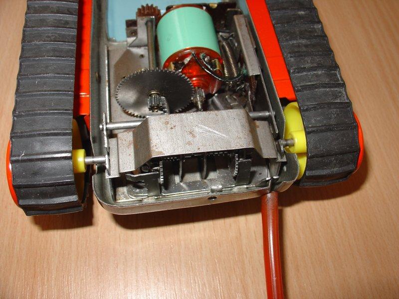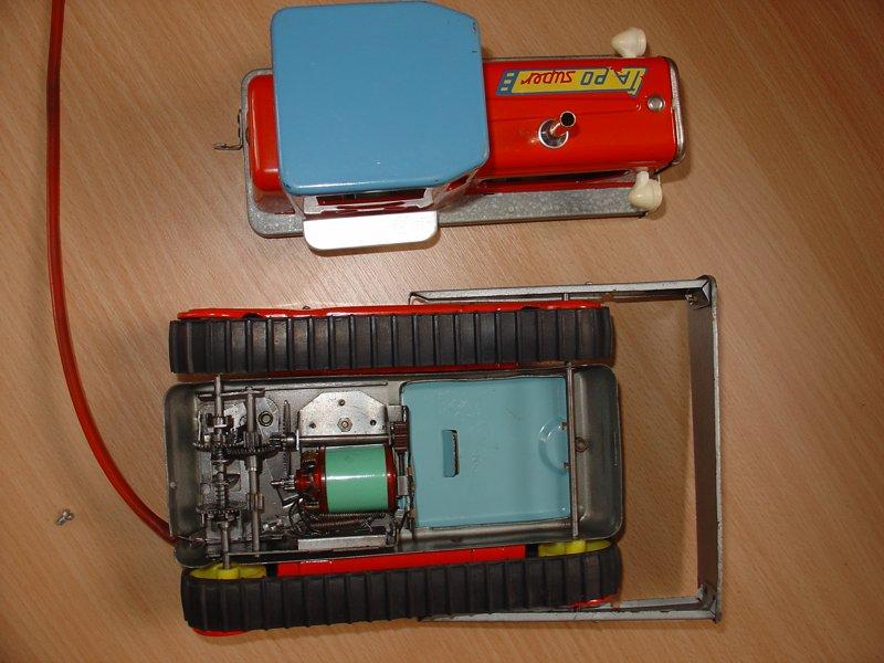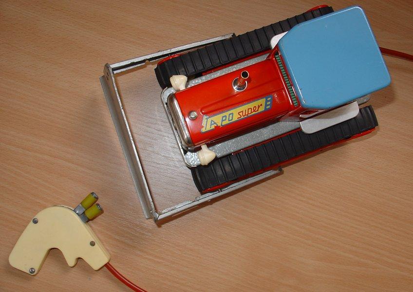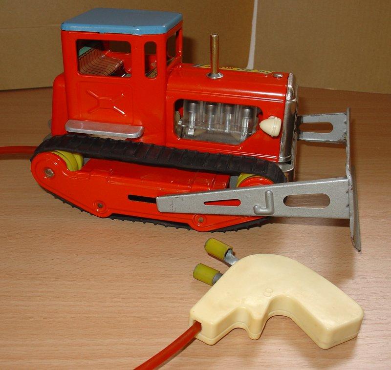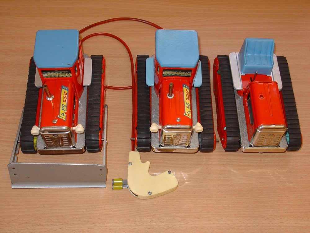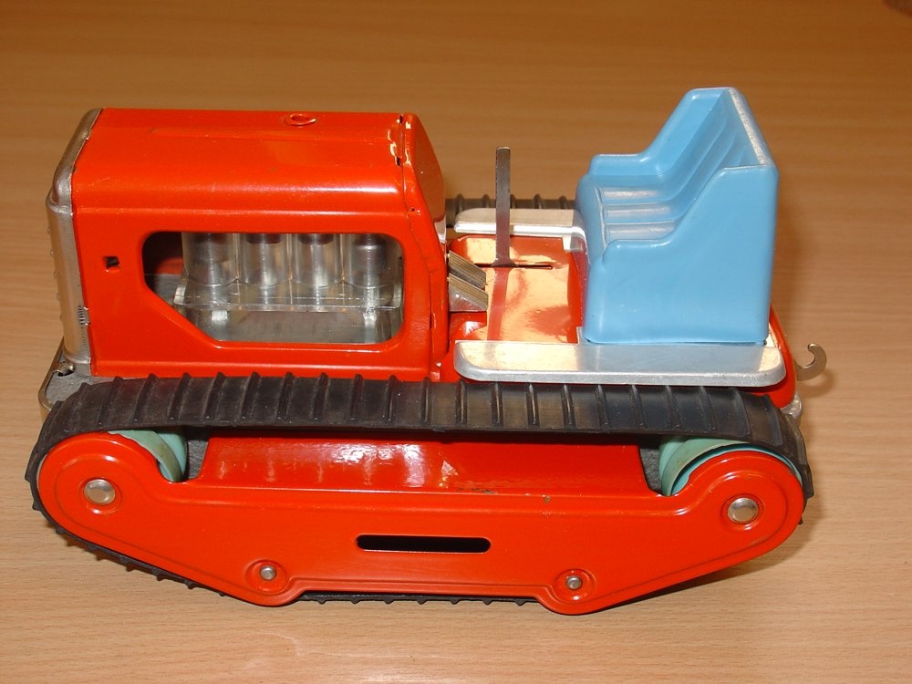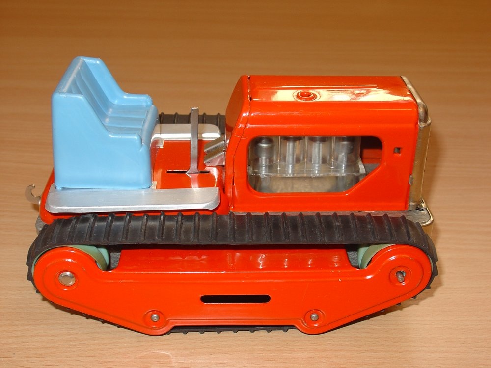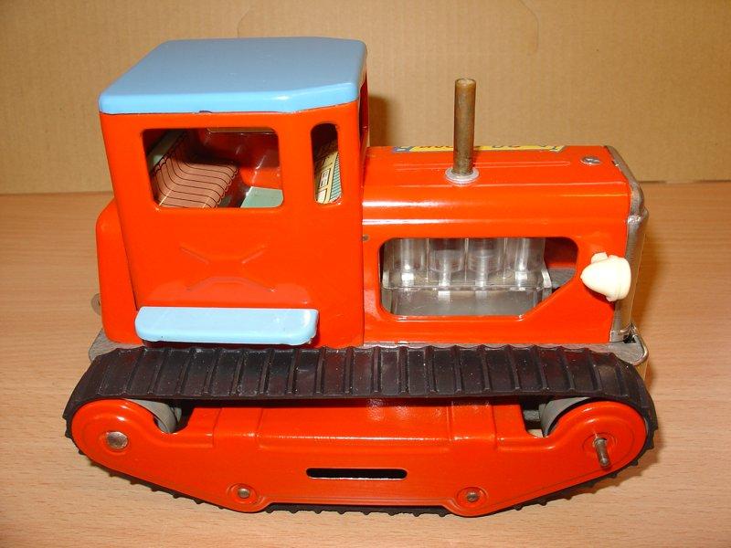 Tento výrobce ještě vyráběl verzi bez dálkového ovládání, která je dost neobvyklá, a také poměrně vzácná. Aby bylo možno páčkou na hračce přepínat směr jízdy vpřed-vzad, nemohla mít kabinu. Funkčně tedy byl podobný jako velmi známý a oblíbený pásový traktor téhož výrobce, který se vyráběl asi 20 let, a proto je možno ho ještě dnes často vidět. Konkurovat sám sobě bylo asi jisté specifikum té doby, i když podobnost s propracovanou verzí s dálkovým ovládáním umožnila rozšířit sortiment. Mechanický převod byl u této verze značně zjednodušen, takže zmizely poloosy, posuv ozubených kol po poloosách a samozřejmě i přepínač se poněkud změnil, aby mohl být ovládán páčkou na místě řidiče. Pohyblivé písty v průhledném bloku motoru zůstaly zachovány.