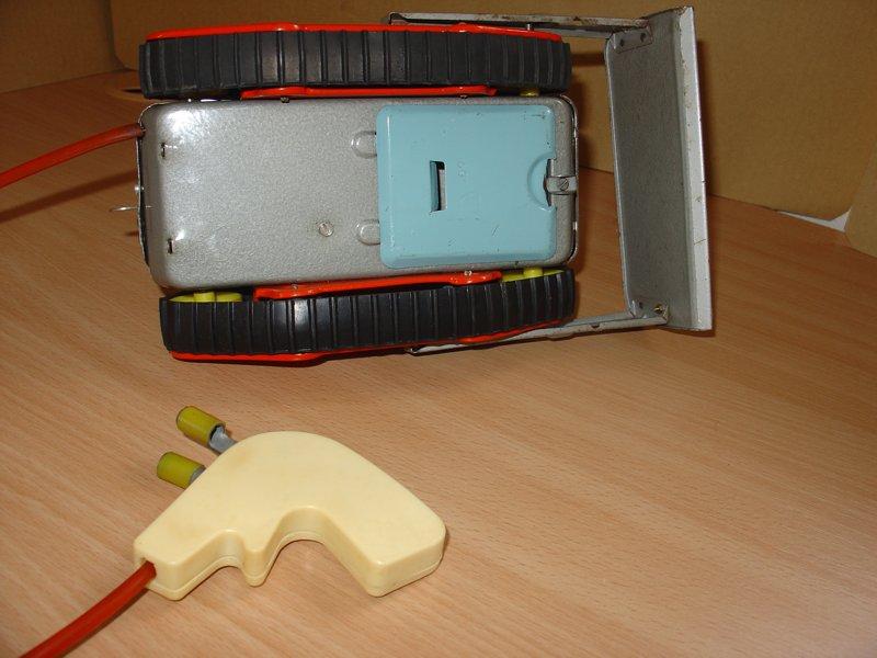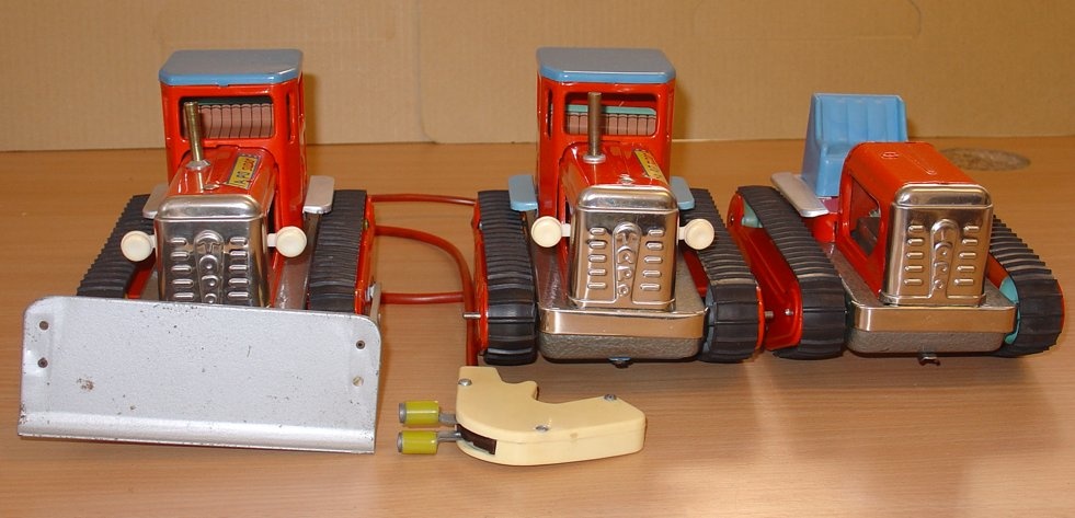 Jsou nám známy dvě verze této hračky. Kompletní je zřejmě starší verze, má otočnou zarážku krytu baterie, takže nebylo třeba používat šroubovák, ale při nárazu na překážku se mohl uzávěr otevřít. Starší verze má hlavní kola žluté barvy. Novější verze hračky, kterou jsme získali, postrádá jen dálkové ovládání. Lišila se modrými kryty pásů pod kabinou a jiným krytem baterie, který bylo nutno uzavřít šroubkem. Sama o sobě je ve velmi pěkném stavu a je jinak funkční. Má hlavní kola šedé barvy. Pojezdová kola jsou u obou verzí šedivá.