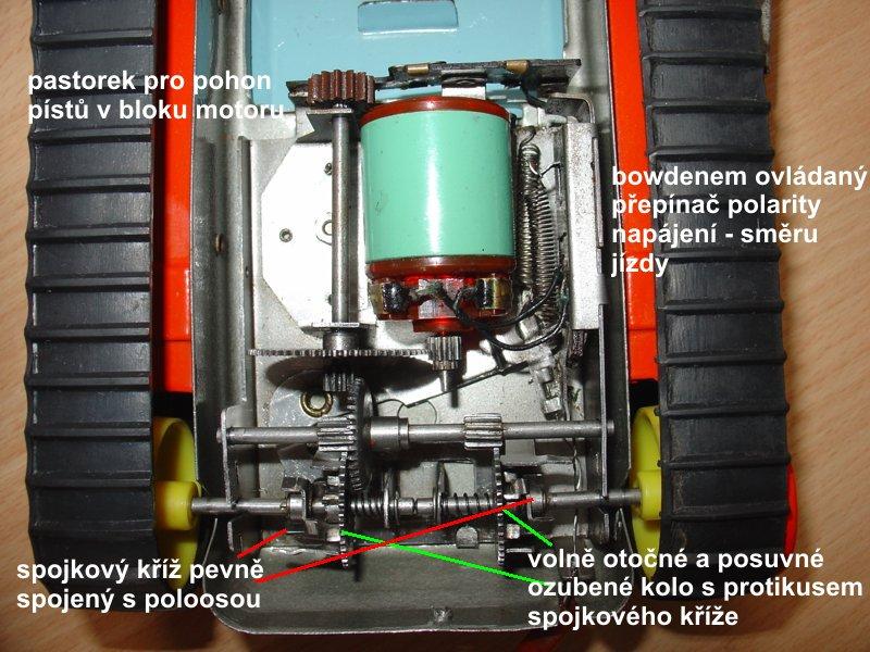 Po vzoru východoněmeckých pásáků i tento má průhledný blok motoru s pohyblivými písty.