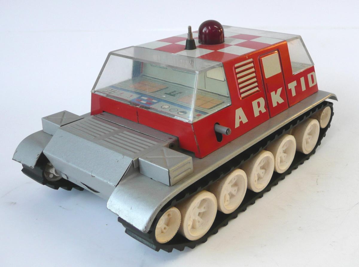 KOSMOS. Výrobce ???, SSSR. Plast, délka 23cm. Při jízdě bliká, mění směr jízdy po nárazu na překážku. Mimořádně...