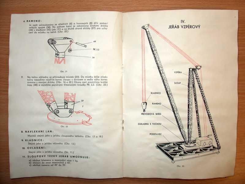 Velmi cenným je krásně provedený návod na různé druhy jeřábů: věžový jeřáb, jeřáb sloupový lehký, jeřáb slupový těžký, jeřáb vzpěrový. Většinou jsou jednotlivé typy schopny zvedat břemeno o hmotnosti 1 kg.
