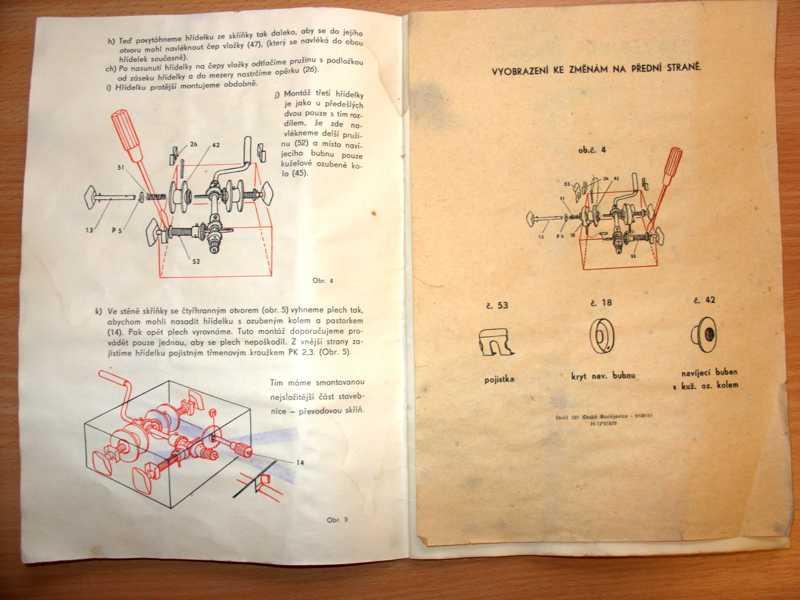 Ukázka návodu – sestava převodové skříně (starší verze), pěkné barevné odlišení.