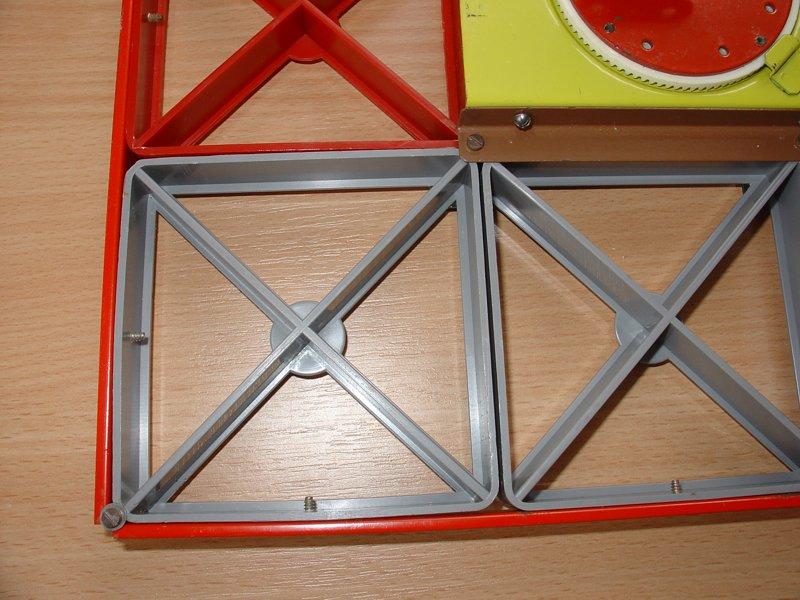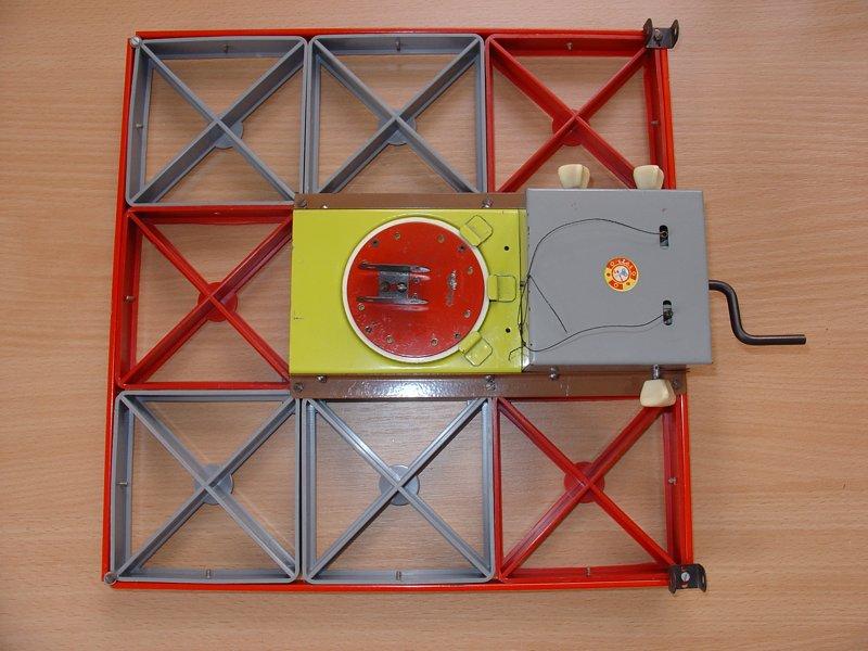 První verze byla výlučně kovová (polyamidová byla pouze převodová kola, navíjecí bubny a kladky), později byla základna rovněž z plastu. Velikost základny 29 x 29 cm.
