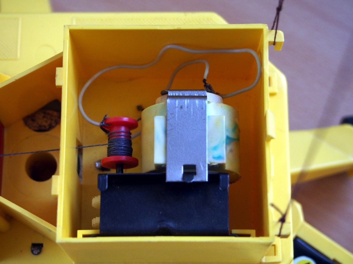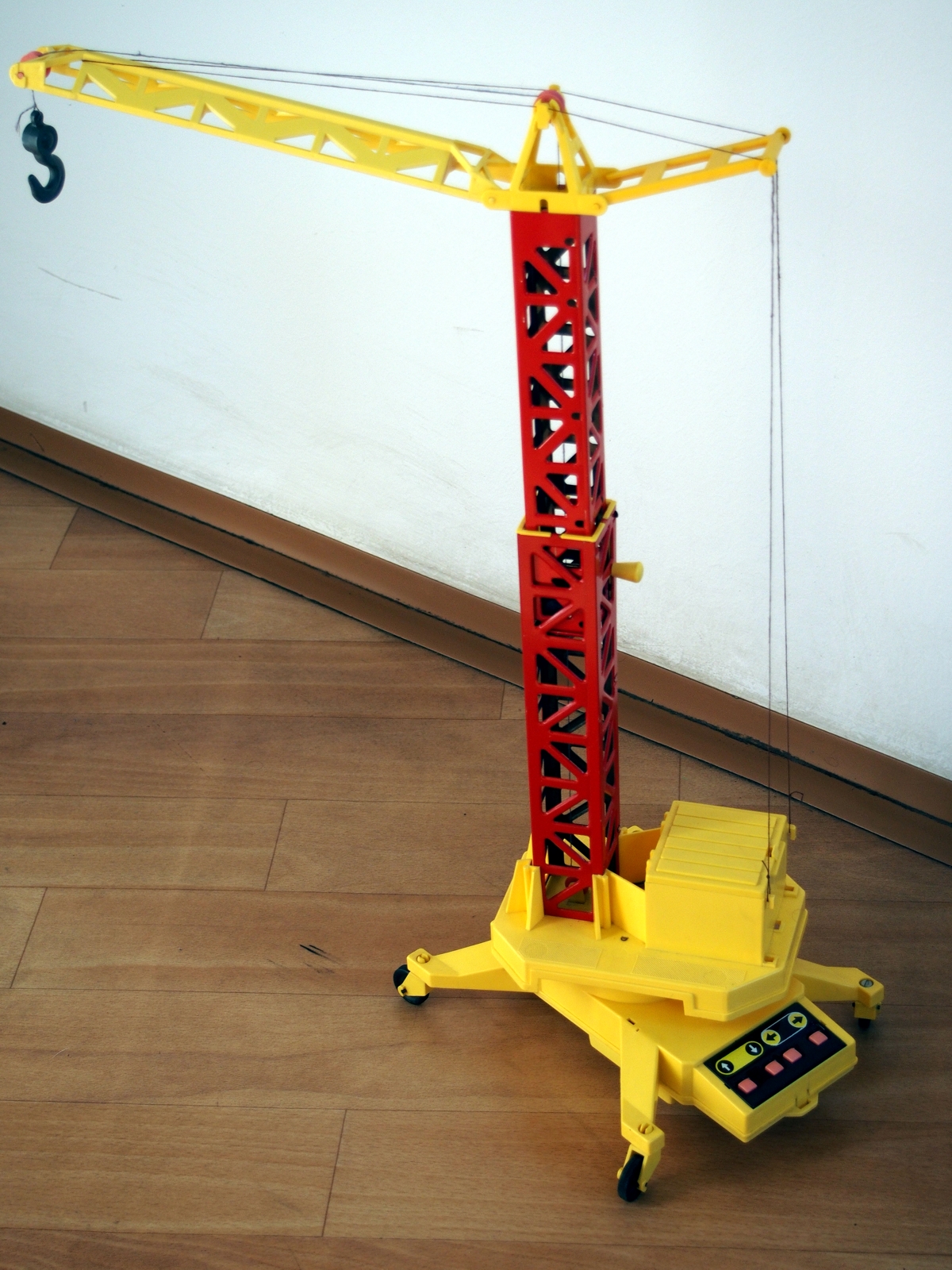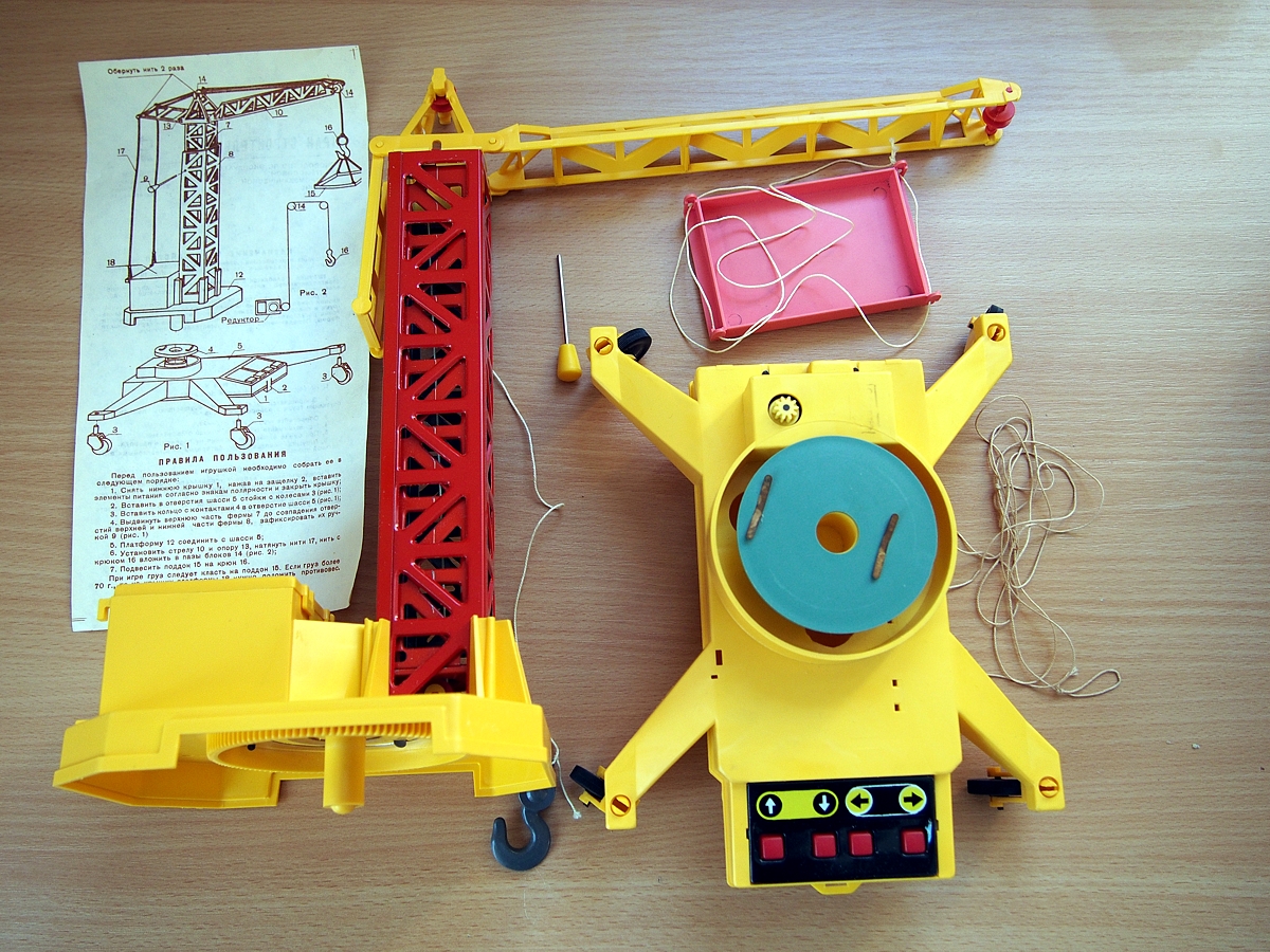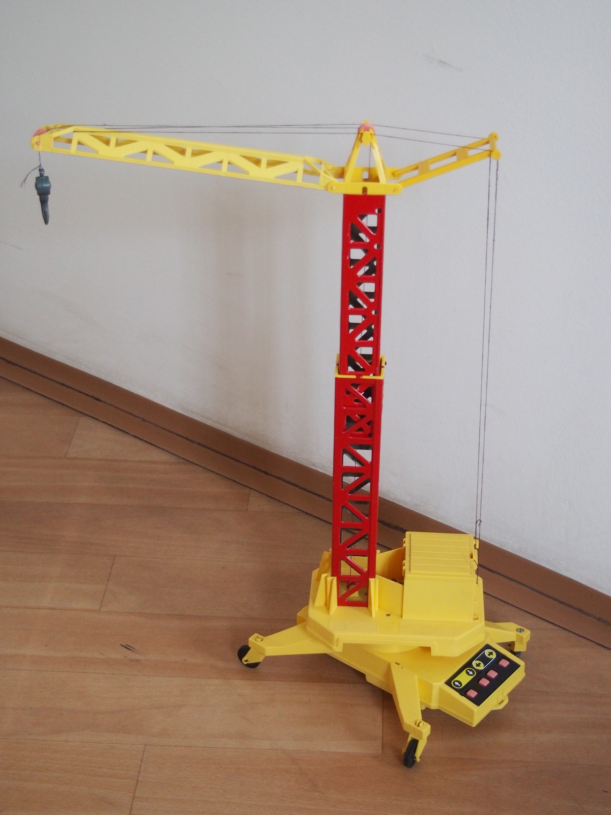 Pohon zdvihu a otáčení je elektrický, ovládání tlačítky přímo na hračce. Velice sympatická hračka s méně kvalitními plasty (vzhled a pevnost) a choulostivými kontakty pod tačítky, které se projevují značnou poruchovostí při provozu (povrch kontaktu je cínovaný). Stožár jeřábu má nastavitelnou výšku v malém rozsahu. Jako příslušenství je dodávána i plošina k zavěšení na hák. Pojezd je ruční.