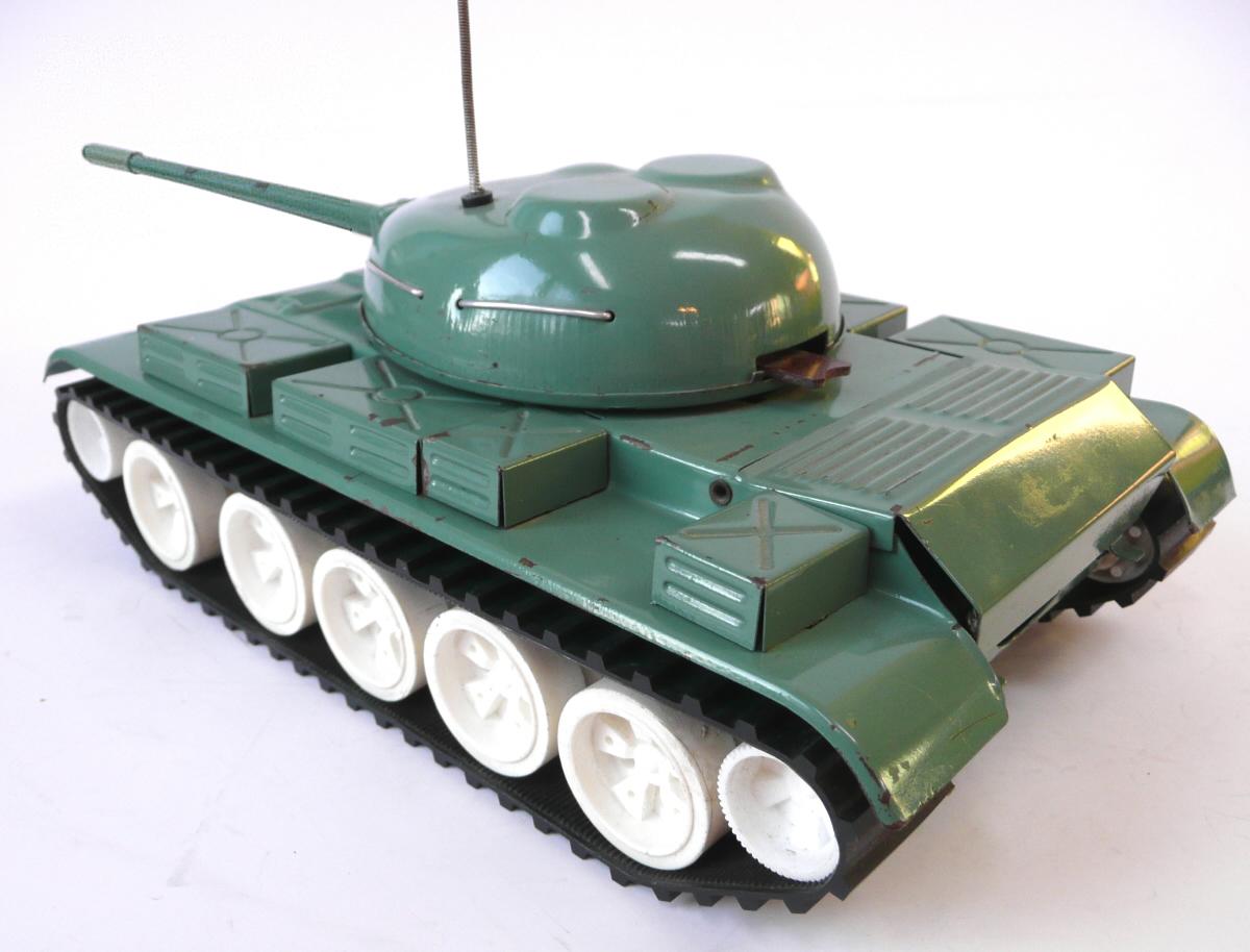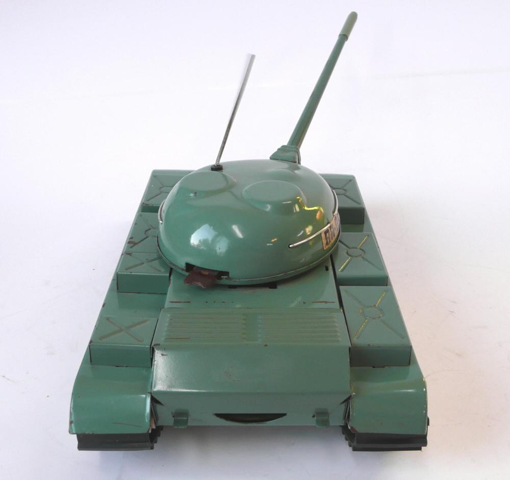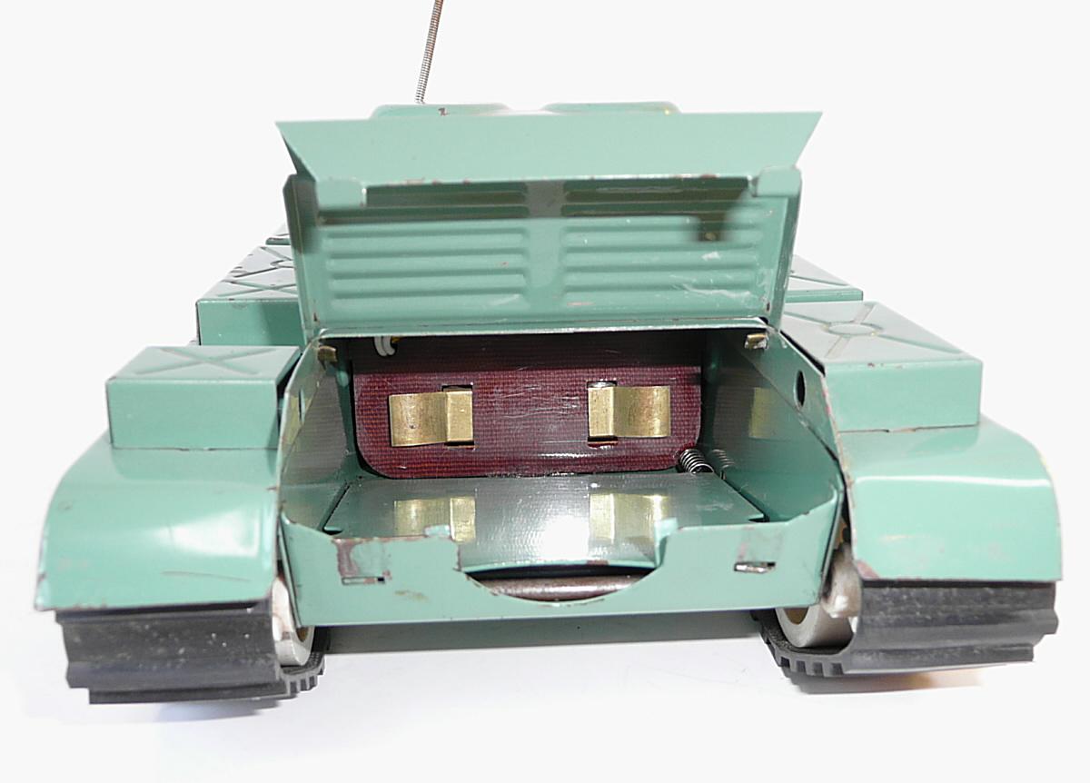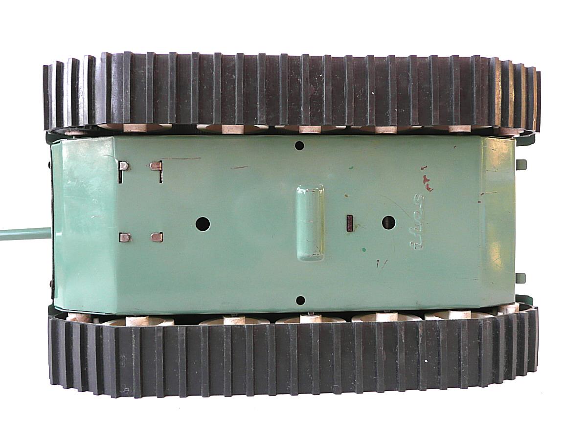 Pohon elektromotorkem, ovládání jízdy vpřed-stop-vzad pomocí přepínače v zadní části věže (toto řešení jen u plechové verze, plastové verze měly přepínání pomocí tyčky procházející podvozkem). Směr jízd se dal ovládat natočením věže do určeného směru, čímž došlo k vysunutí svislého trnu z podvozku, kolem kterého se tank pootočil - pás na straně zatáčení se pohyboval ve vzduchu). Vyráběla se i verze z plastu se stejným řešením pohonu, později i ženijní verze s radlicí.