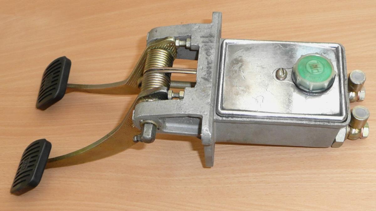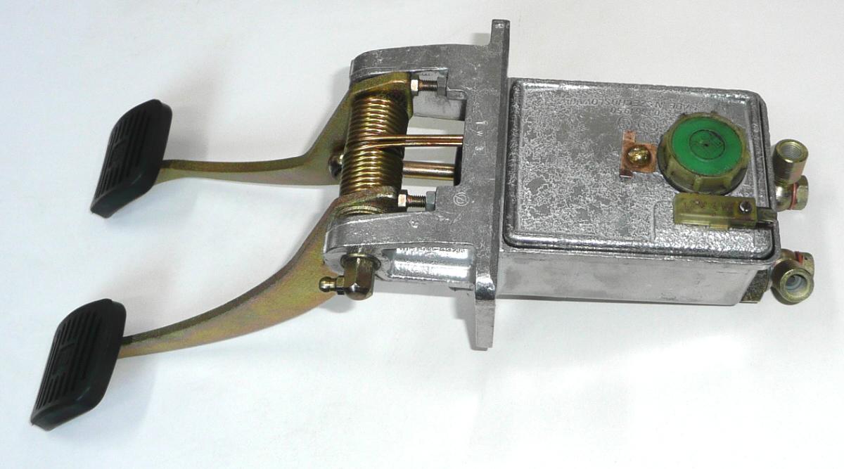 Brzdo-spojkový komplet. Typ 1000MB, varianta s plovákem a čidlem. Kompletní funkční a estetická renovace – přebroušené nebo převložkované válce, nové díly uvnitř, povrch pozink, nové gumové šlapky a pružiny. Kódy: 110595013.