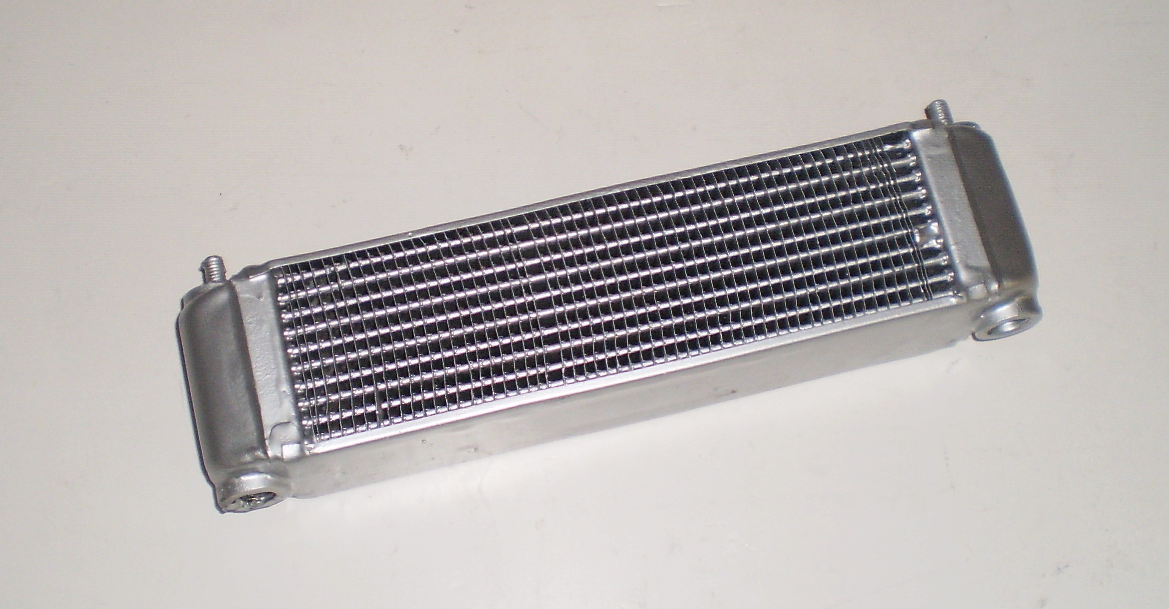 Chladič oleje. Typ 110R. Demontáž vaniček, rozletování trubiček a žebrování, důkladné čištění, sletování, kompletní pocínování a nástřik stříbřenkou. Výkup extra 700 Kč – viz sekce Výkupujeme. Kódy: 112040400.