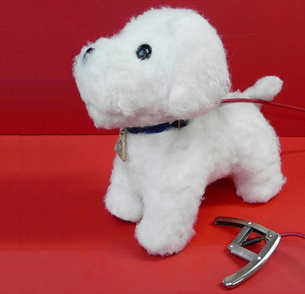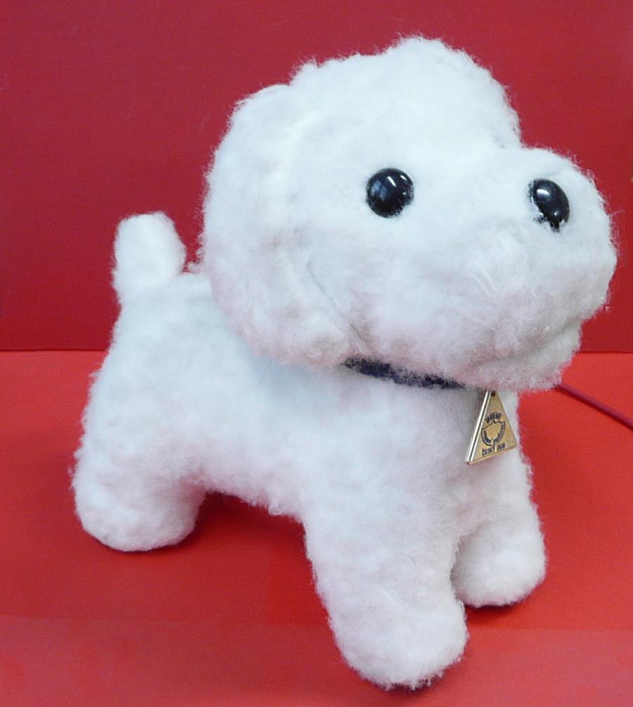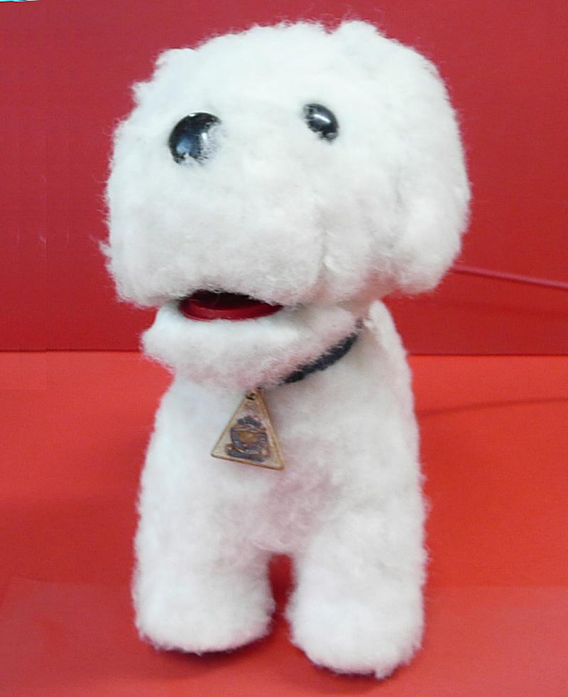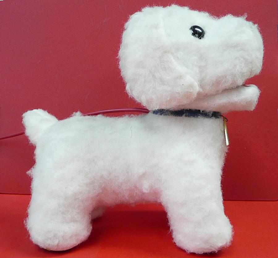 PES bílý 2. Výrobce ???, země ???Elektrický. Délka 23 cm. Přepínač 1.poloha = chůze vpřed + otáčí hlavou + vrtí...
