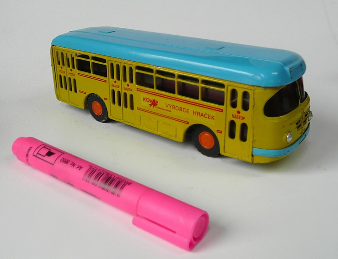 BUS KAROSA ŠD11. Výrobce KOH-I-NOOR Hardtmuth (po roce 1980 s názvem GAMA) Trhové Sviny, ČSSR. Plast, délka 34cm. Dvě...