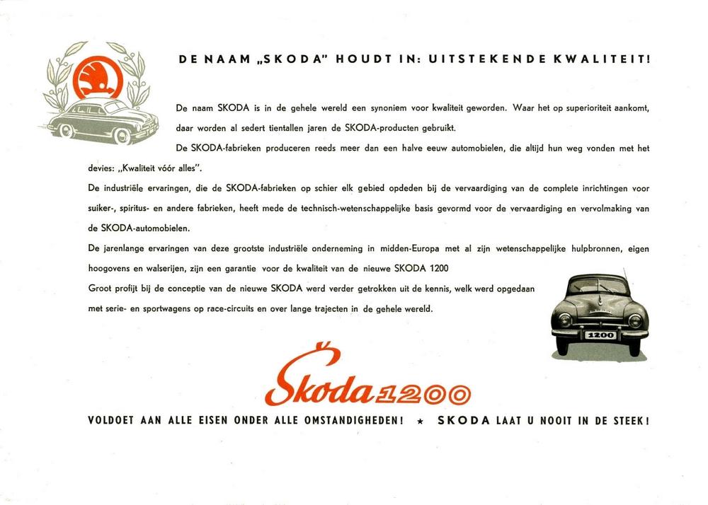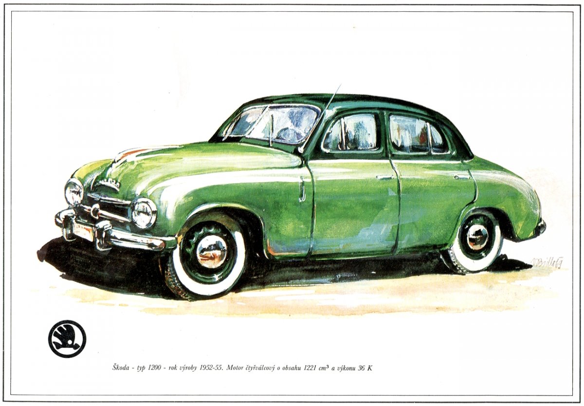 Počátek 50-let zahájili technici mladoboleslavské automobilky práce na přípravě výroby nového typu oficiálně označeného ŠKODA 1200 lidově zvaného "SEDAN". Oproti předchůdci Škodě 1102 měl zvětšený objem motoru na 1221 ccm (větší vrtání válců) a tím i větší výkon 36 PS, 4 rychlosti. Moderní oblé tvary, prostorný interiér, 4 dveře. Souběžně s výrobou tohoto typu se v AZNP montovaly i výběhové série osobní Tatry T 600-Tatraplan (1951-53). Vůz sloužil především ve státním sektoru, každému se asi vybaví obligátní černý sedan se soudruhy z vnitra (StB).