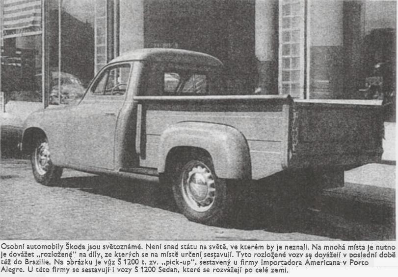 Vozy se musely pro export rozebírat a montovat až na místě. Zde v Brazílii – sestavené u firmy Importadoro America v Porto Alegre. U této firmy se montovaly i sedany Škoda 1200, které se poté rozvážely po celé zemi.