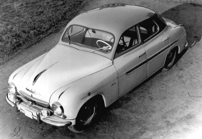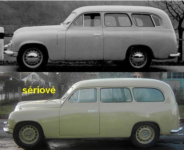 Předsériový prototyp. Ještě mechanické výklopné blinkry (vpředu bez prolisu, vzadu jen dvě světélka), sloupek mezi zadními okny šikmější s větračkou, jiná kapota i jednodušší ozdobný nos. Dveře až pod práh.
