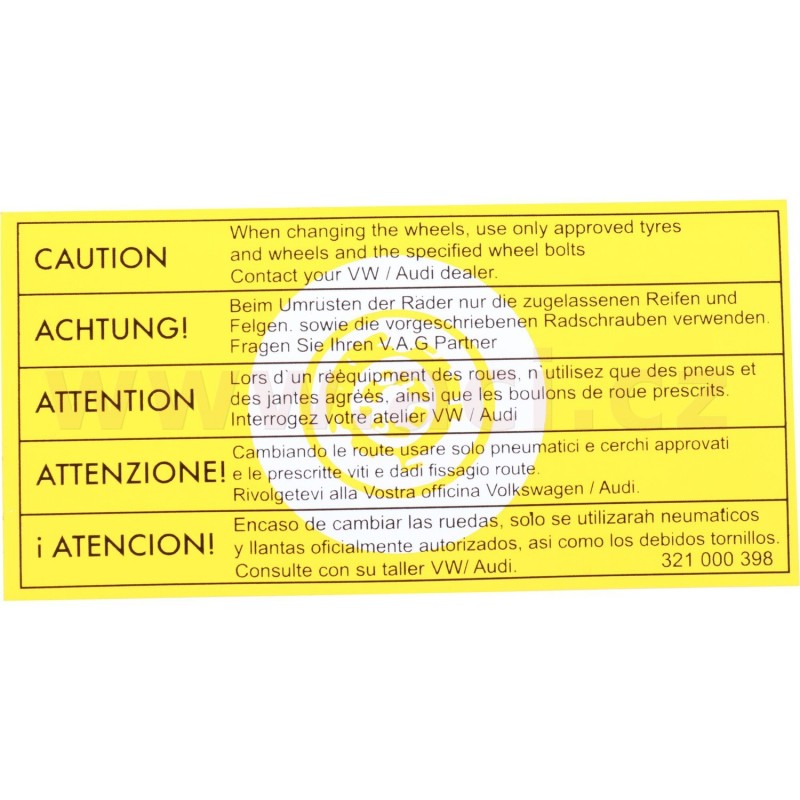 Samolepka varování výměna kol (Golf, Jetta, Scirocco)