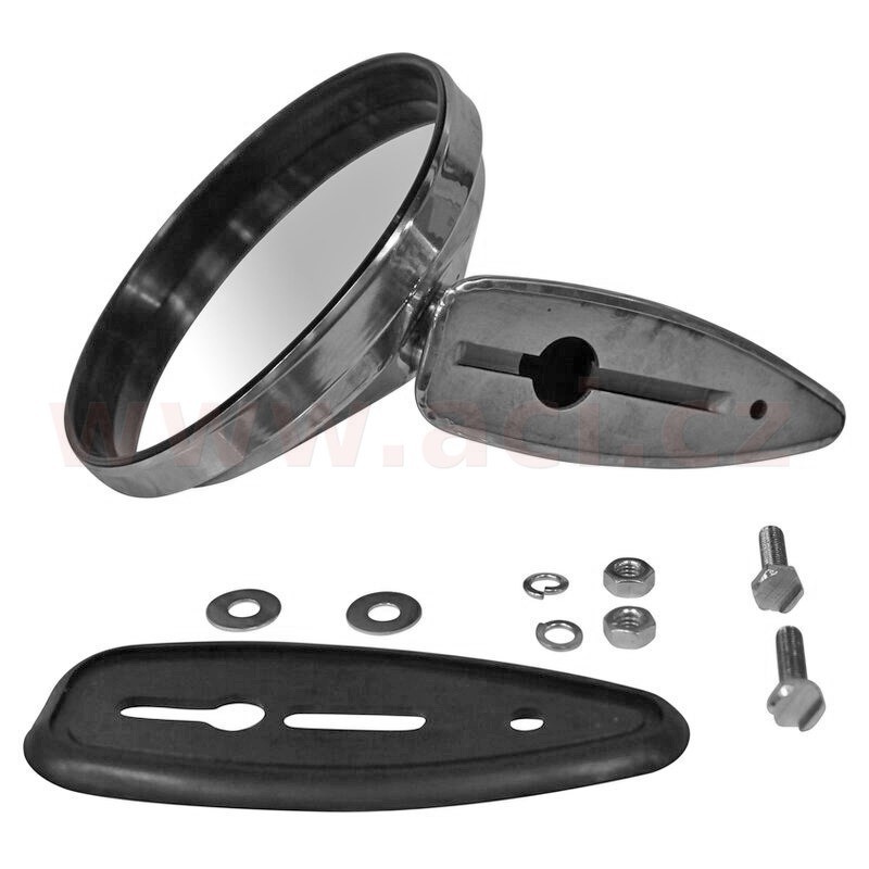 Zpětné zrcátko s rámečkem a těsněním, chromovaná ocel L=P r.v. 67-71